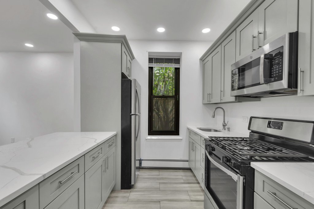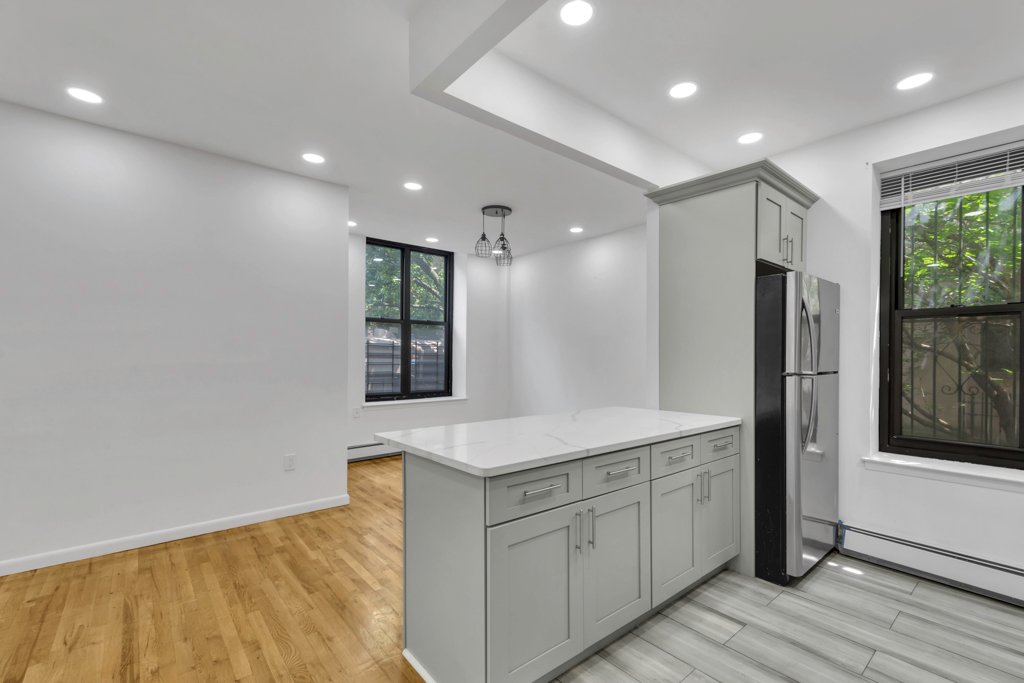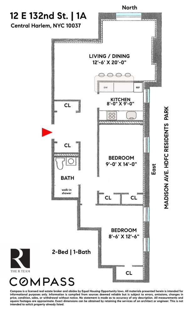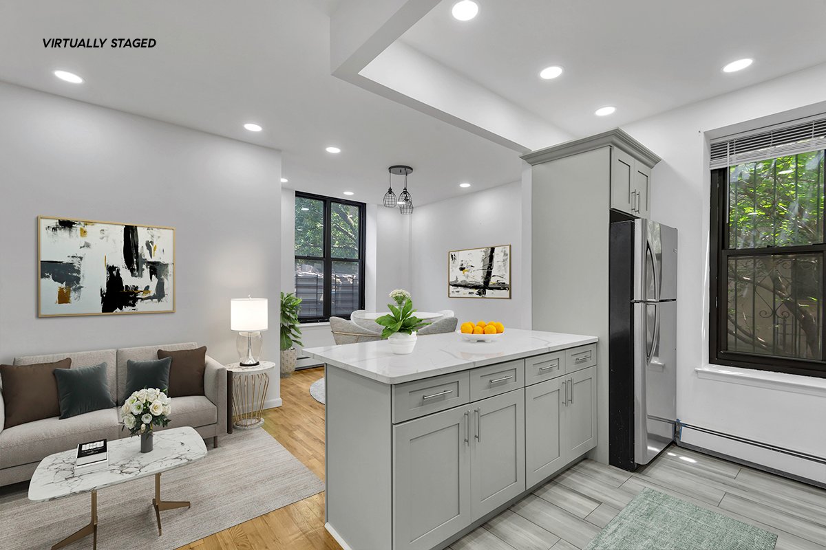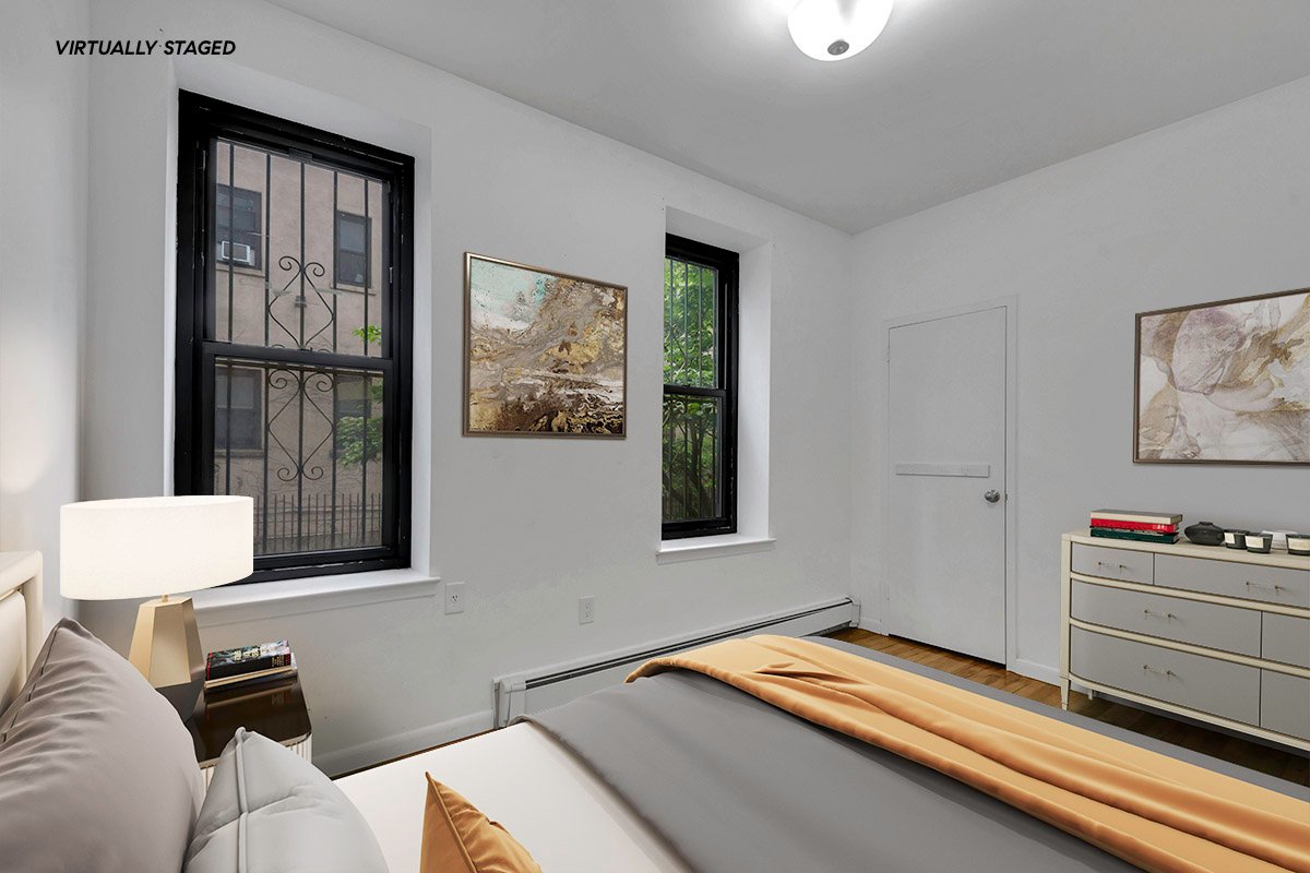 Smartly renovated first-floor 2-Bed/1-Bath home in the Madison Avenue HDFC, Central Harlem, off Fifth Avenue. Open-plan windowed kitchen features a large, granite countertop island, and stainless steel appliances, great for casual dining. New bathroom features a double-width walk-in shower. Two sizable bedrooms, each with ample closets. High ceilings and hardwood floors throughout. Street views from the North exposure, lovely pocket park views from all other East facing windows. Excellent value as your primary residence.