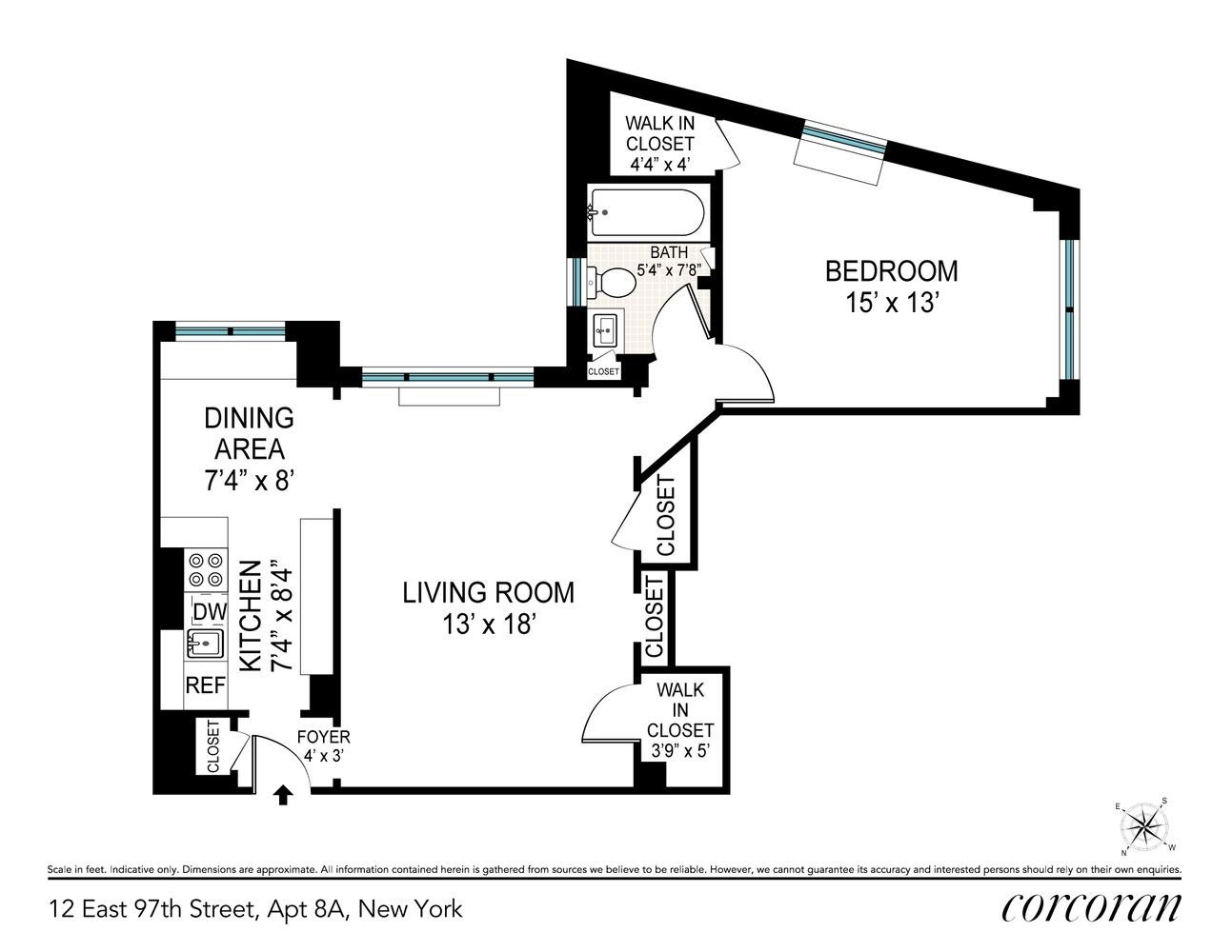 Located off Fifth Avenue on Manhattan’s Upper East Side, is this bright one bedroom with a separate dining area, a renovated kitchen and bath, hardwood floors and prewar charm. A washer and dryer may be installed. 12 East 97th Street is a beautiful prewar building that’s pet friendly, with full-time doormen and a live-in super. The building has a charming lobby and a landscaped garden entry. In the basement is a laundry room, bike room, and a common storage room with designated spaces for each apartment. Located in popular Carnegie Hill near the Reservoir jogging paths, Central Park tennis courts, the East Meadow, and 2 new playgrounds. It is a quick walk to the Conservatory Gardens and many museums, shops and restaurants. St. Nicholas Russian Orthodox Cathedral with its striking onion domes is just across the street. There is an assessment of $67.09 per month for 12 months, ending 12- 2022.