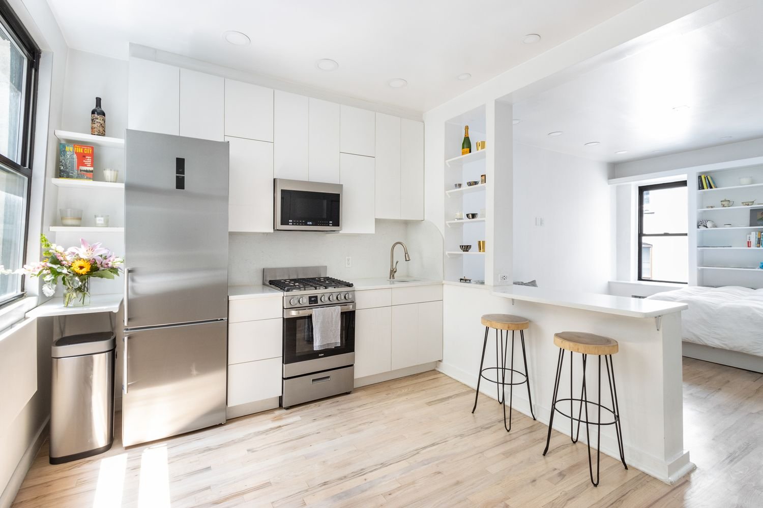 Bright and airy gut renovated studio in the heart of The West Village. Three flights up to this north and south-facing apartment with high ceilings, brand new Chef’s Kitchen w/ stainless appliances, hardwood floors, and a newly renovated bathroom. Comes with a private storage unit (8X8) and group bike storage. W/D allowed in unit.