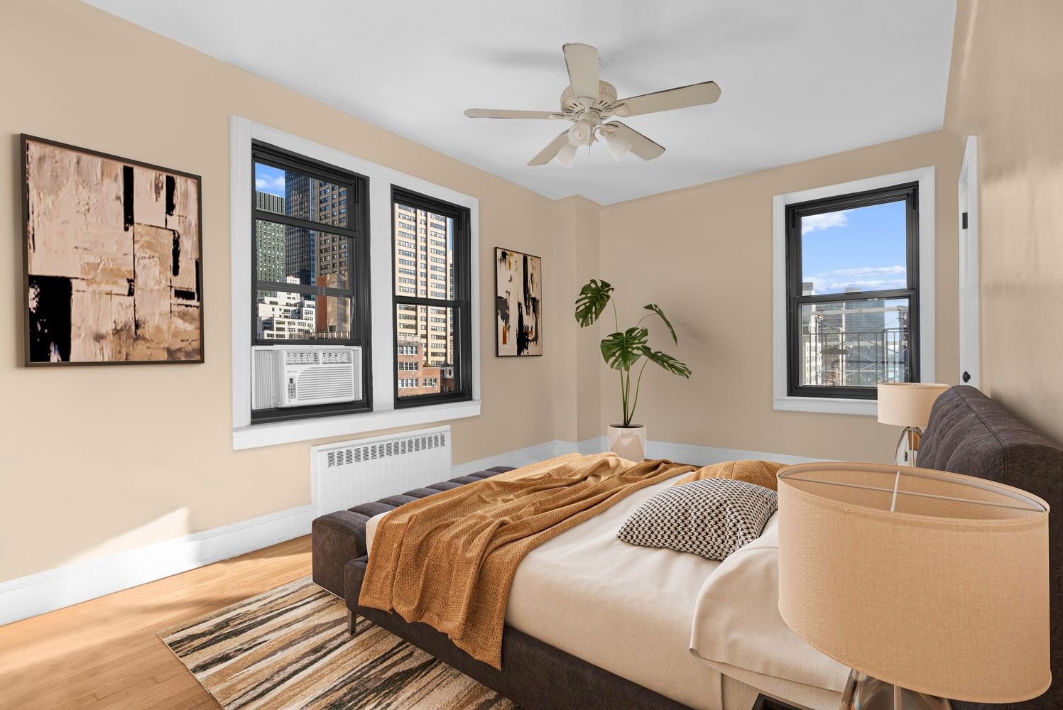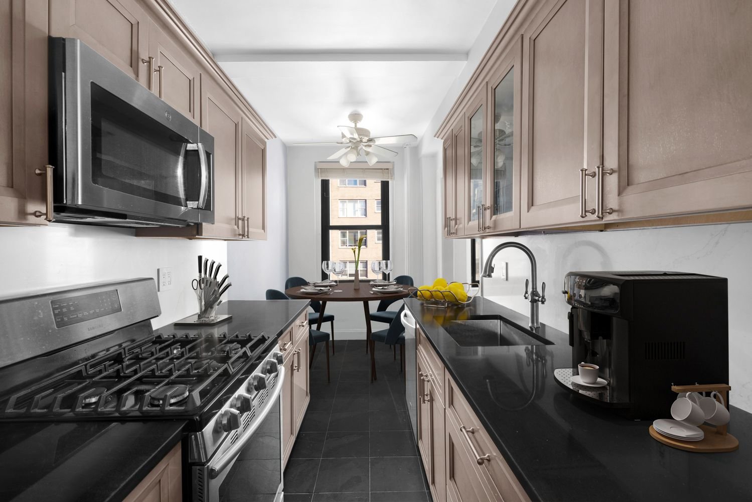 This corner unit has Northwestern exposure and is one of the largest 1 bedroom apartments in the building. The layout of the apartment offers tons of storage space featuring a front hallway closet and double door pantry closets near the bathroom and two additional closets in the room.