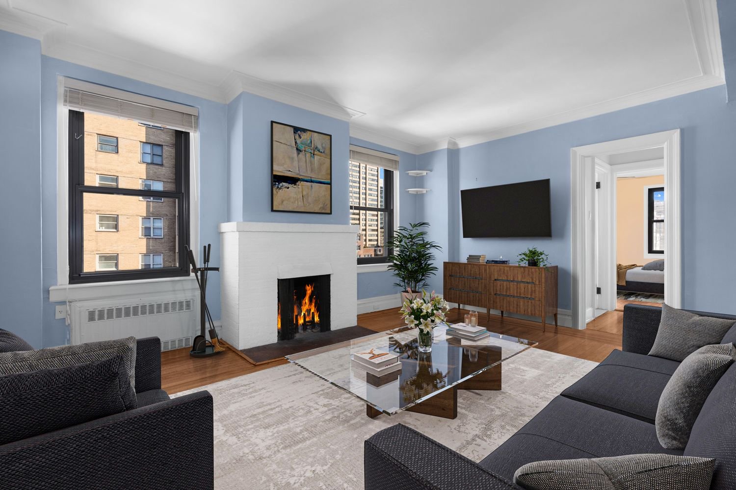 This spacious apartment features 9 foot ceilings, a charming working wood burning fireplace, and beautiful crown moldings. The large windows across all of the rooms of allow plenty of natural light to rush in while yielding great views of the NYC skyline.
