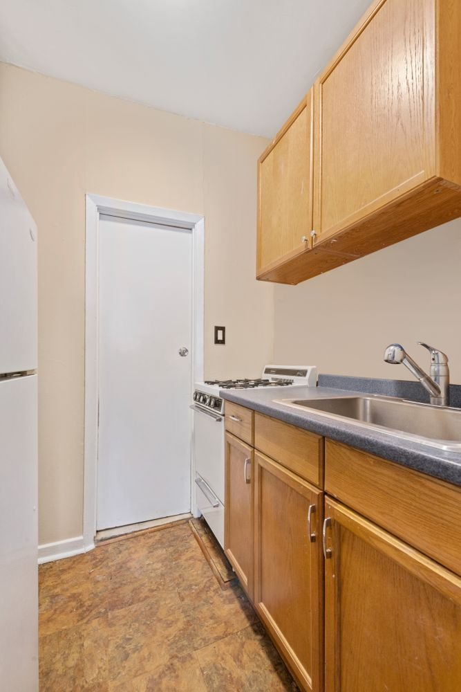 This expansive and bright studio boasts charming exposed brick, and a scenic backyard view. Laid out extremely well, the home allows for comfortable living with ample room for any sized bed, living and dining furniture, as well as an office space. It is worth the walk-up!