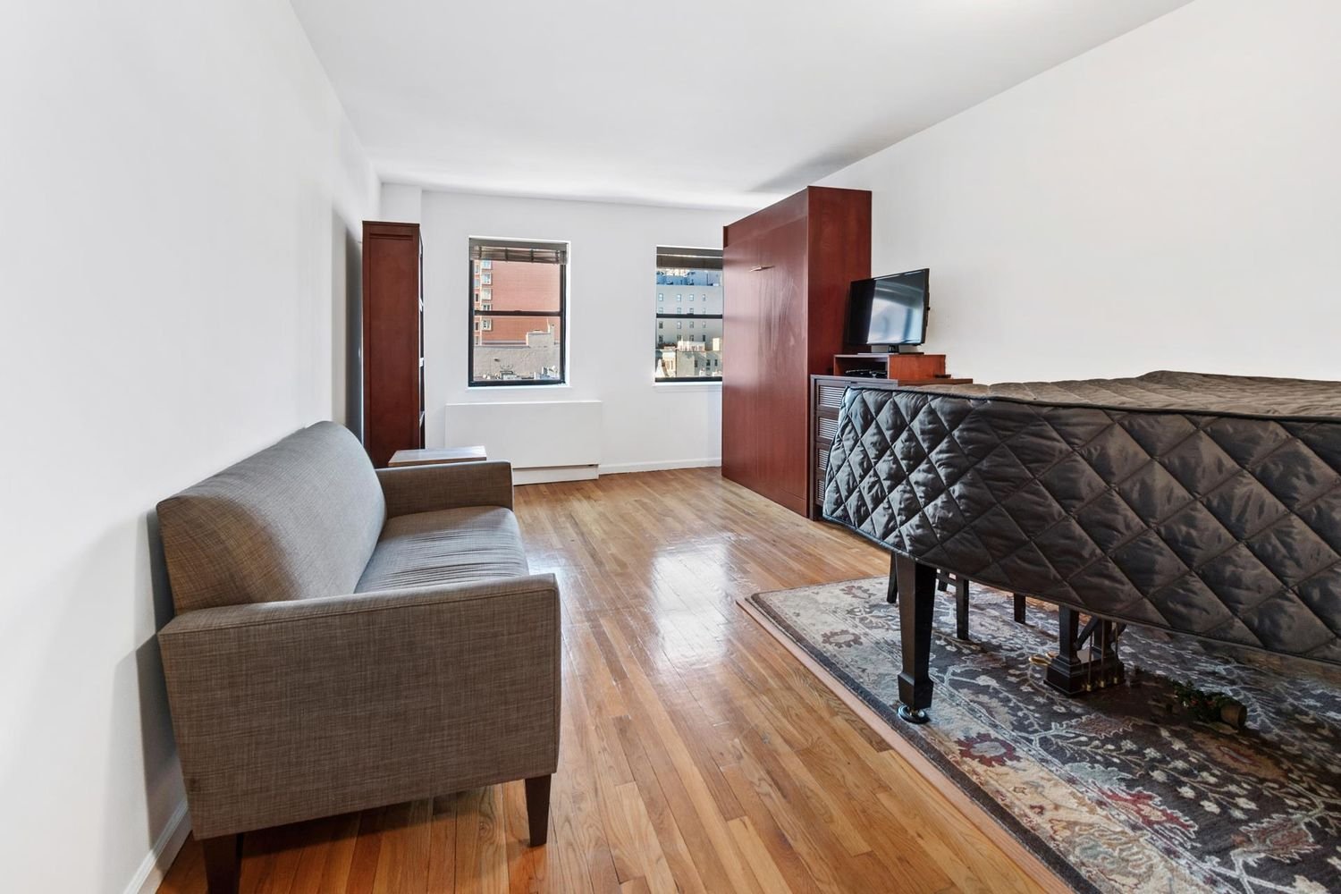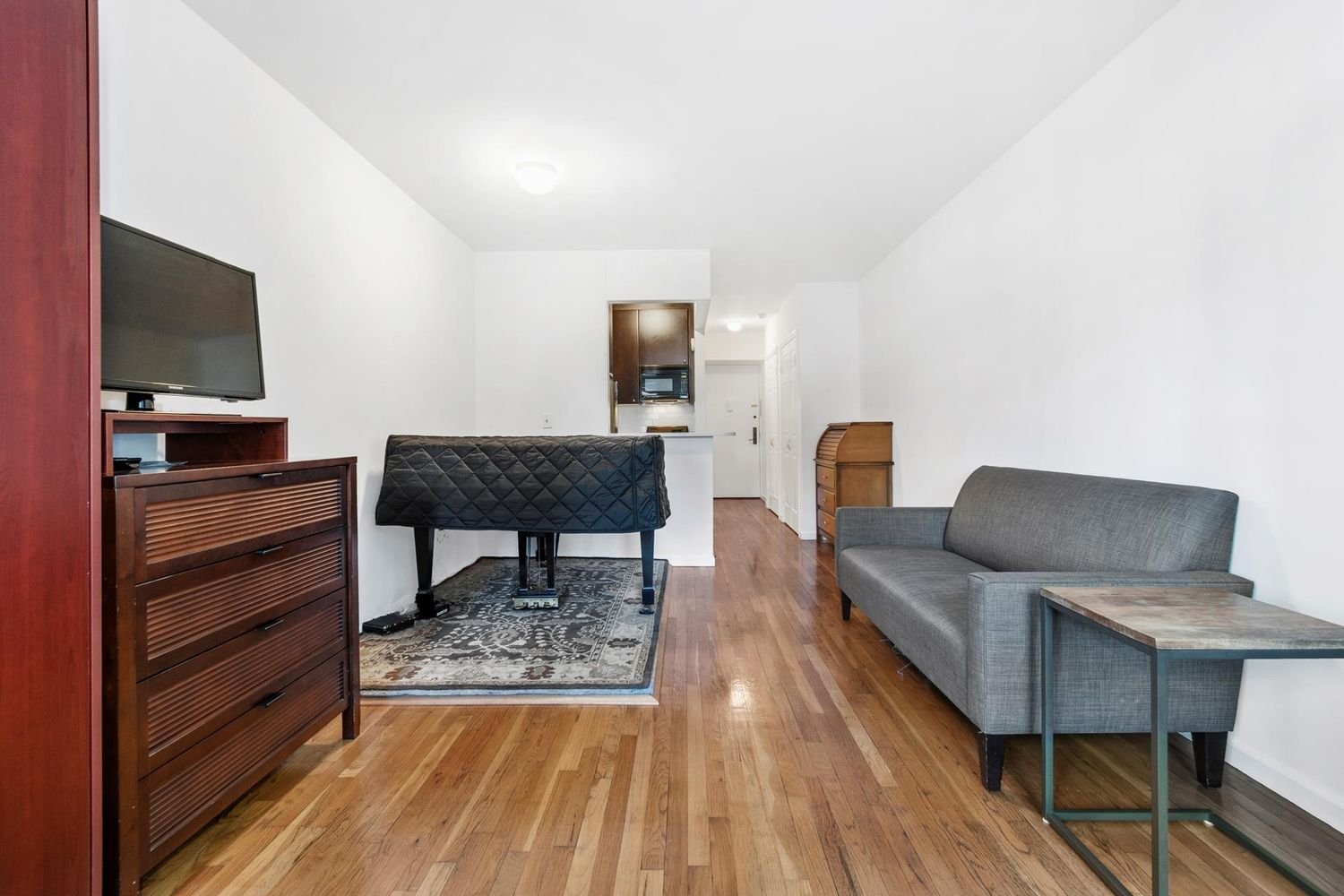 Just Listed at the Chesterfield Condominium! This 7th floor prewar studio condo has western sky views over Amsterdam Avenue bringing in great natural light all day long. As you enter the apartment, you have two double closets along the wall providing excellent storage. The bathroom is off of the foyer and has a re-glazed tub with subway tiling, a pedestal sink, a gorgeous new chrome LED light fixture with clear and frosted glass shades. There is a renovated pass-through kitchen with a breakfast bar featuring floor to ceiling cabinetry, stone counters with a subway tile backsplash. Modern appliances include a stainless-steel refrigerator and stove, a black built-in microwave, and dishwasher. No bed is necessary as the studio comes with a full-size murphy bed. There is a thru-the wall heating/air conditioning unit and beautiful hardwood floors throughout. The Chesterfield is a full-service, prewar condominium located at West 80th Street and Amsterdam Avenue. This building has a full-time doorman and live-in resident manager. The marble lobby and elevators were renovated in 2021. Just two blocks from Central Park, one block away from the 1 train and the M79 bus, near the B/C trains and M86 bus, and just a short distance to Riverside Park. Enjoy the culture of the UWS with the American Museum of Natural History, New York Historical Society, Beacon Theater, trendy restaurants, bars, cafes, boutiques and more. Call for a private showing to make this home today! Note: there is a monthly assessment of $331.90 through October 31, 2023.