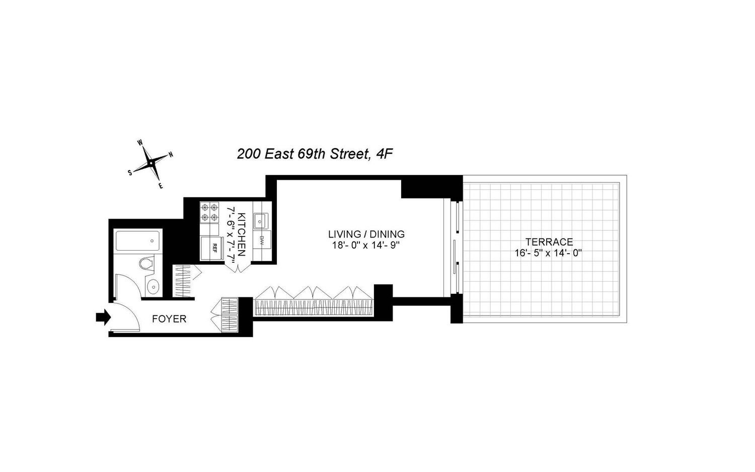 Rare opportunity to own a studio in a luxury condominium with it’s own private outdoor space. Floor to ceiling windows ensure good light, and open to Your 230 sq ft terrace, which will be a haven for outdoor entertaining and dining. This apt also features a large galley kitchen, a marble tiled bathroom, and hardwood floors. The closets have been custom built. Located in a luxury condominium with a 24 hour doorman, concierge, & a large fitness center, it is most conveniently located two blocks from the Q and 6 trains, as well as the crosstown bus. The apt is being sold “as is”.
