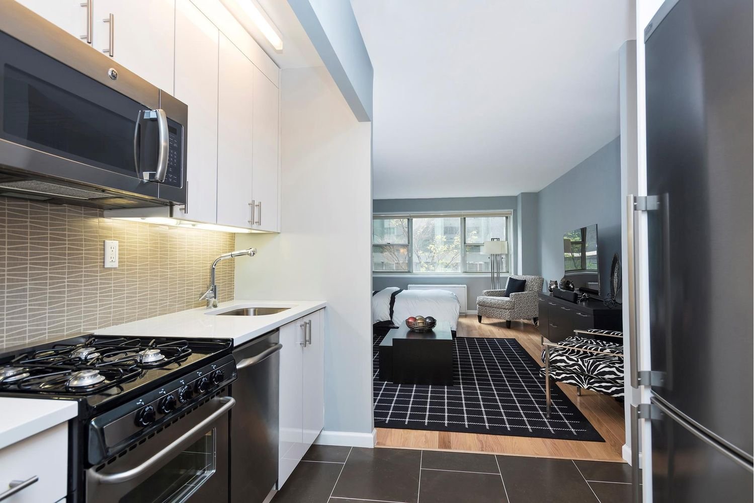 This is a spacious and sunny, mint condition studio with ample space for living, dining, and sleep area. The south facing unit has a dressing area, newly renovated kitchen and bath, and four big closets. The Hawthorne is a full service condop with full time doorman, laundry room, and fabulous roof deck. The building is conveniently located just steps off Third Avenue with easy access to the E, M, N, Q, R and 6 trains as well as crosstown and uptown/downtown buses. This is a condop and requires a sales application, but no board approval or interview. Tenant in place through March 2023