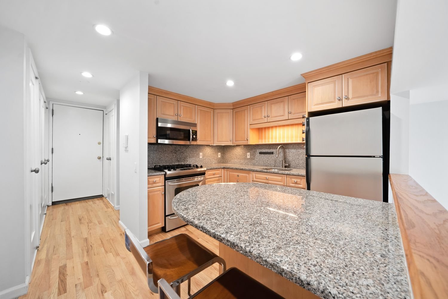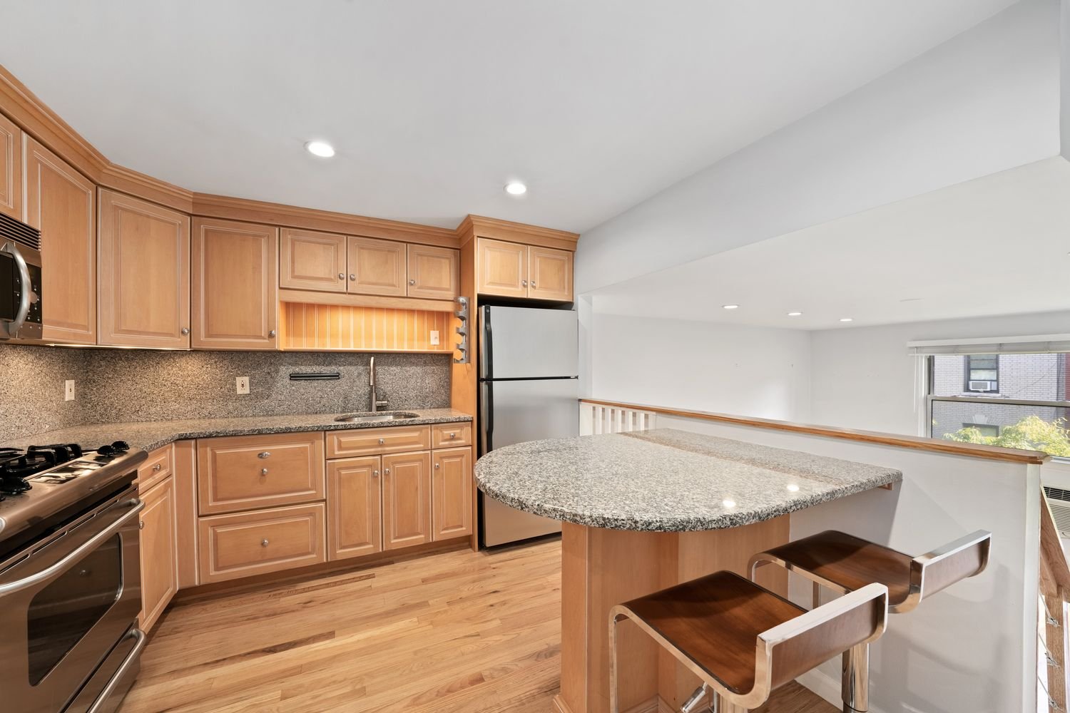 5L is a beautiful and bright studio in the heart of Greenwich Village. With a spacious eat-in kitchen and large living area, this studio is split into two levels which helps define each separate space. The apartment has a generous amount of closets throughout and the kitchen is open to the living room below with a breakfast bar for eating meals. The living area has high ceilings and large windows facing East with light pouring in all day. There is also a private balcony where you can enjoy your morning coffee every day overlooking the treetops on Thompson Street. Washington Square Park and all the charming restaurants and cafes are all nearby. The location could not be better!