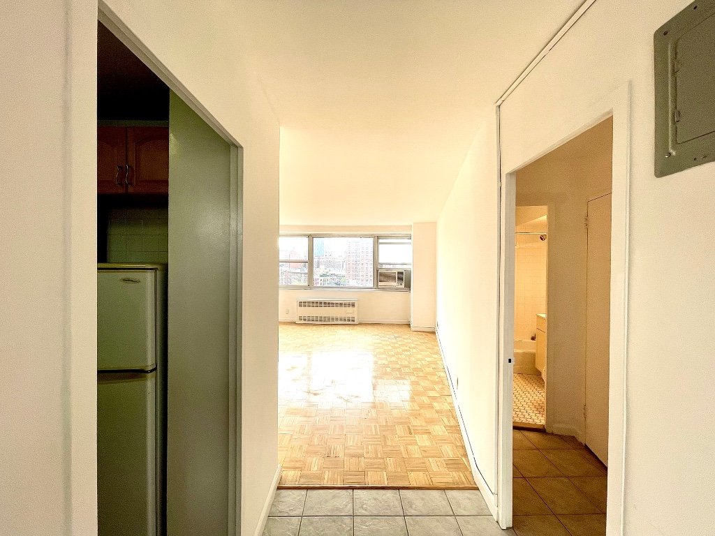 The entry foyer of this spacious studio leads to a wall of southeastern-facing windows that infuses the living space with natural light and offers dynamic city views. The unit can accommodate a queen-size bed with ample room for dining and sitting areas. Separate full size windowed kitchen with granite countertop and plenty of cabinetry. Updated bath. Great closets and storage space. Super low monthly maintenance! Chatham Green Co-op is a gated community with outdoor parking, 24-hour security, live-in super, laundry rooms, courtyards, playground and landscaped gardens. Pets are allowed with board approval. Conveniently located downtown between TriBeCa, Chinatown, the financial District, and the Lower East Side, and steps away from all transportation, restaurants and shopping.