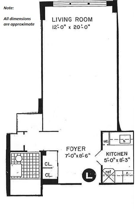 Best Renovated Studio w/ Southern Views! New to market. Live, work and play at the Leslie House in Midtown’s East 50’s- A convenient lifestyle! 8L is a wonderfully large, quiet studio with a spacious layout and southern open city views, great closets, and a renovated beige kitchen, marble bath and wood floors. NYC glitters at night from the apartment’s wall of southern facing windows. 8L is SUN filled and QUIET! 8L is a straight studio which can formally be separated into three different sections – bedroom, living room and dining area – which makes the space feel like a much larger apartment. The bedroom can easily be furnished with a queen size bed, dresser and such. The living room accommodates a couch, chairs and entertaining section and there is a separate dining table section. The oversize LR and DA are perfect for entertaining. Move in ready. Bring your toothbrush. The Building: Full-service AFFORDABLE LUXURY Building in the heart of Midtown. Lovely 24-hour doorman in the East 50’s, The Leslie House is right in the heart of midtown next to all major transportation or a quick walk to work. You have the best of both worlds of being close to work or the subway (E, M,6) and the fantastic residential neighborhood the building is in (Blink and Equinox on the same block, Whole Foods on 57th St, ample nightlife, shopping, and restaurants). A beautifully furnished Roof deck, renovated Lobby and Hallways, Laundry in the basement, and Garage are all highlights. The building is kept immaculate by the live-in Super and team. Pieds-a-terre and parental assistance are allowed on a case-by-case basis. The building has a special assessment to pay off the mortgage for $75/mo Note: All information furnished is from sources deemed reliable and is submitted subject to errors, omissions, change of price, change of other terms and conditions, prior to sale or withdrawal without notice. All dimensions are approximate. For exact dimensions, you must hire your own architect or engineer.
