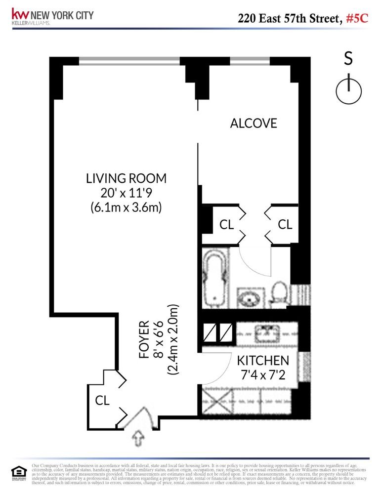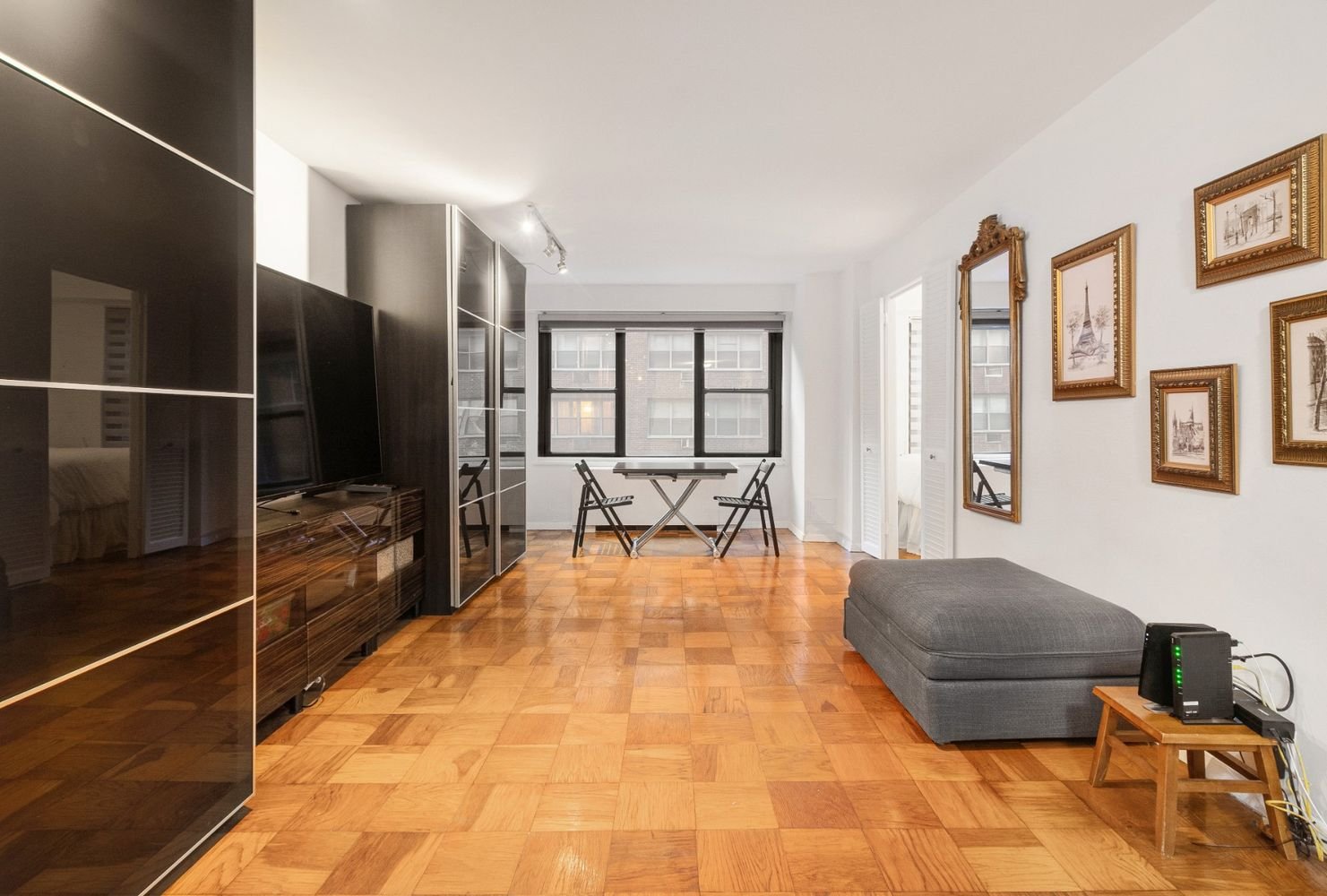 Flexible Co-op rules with Unlimited subletting after 1 year! This beautiful alcove studio offers very good light from three Southern exposure windows and is pin-drop quiet. It features a 20 long living room that allows separate areas for dining and a comfortable size space for entertainment. The entry foyer with a spacious closet is next to the kitchen which was renovated with beautiful cherry oak wood cabinets, stainless steel appliances, and warm hardwood flooring throughout. The windowed sleeping alcove area is serene and welcoming and fits a queen/full-sized bed and nightstands. It offers two generous-sized closets by the ensuite bathroom. A new vanity and glass shower doors updated the bathroom. Carlton East is a well-established mid-rise Coop building located on 57th Street mid-block between 3rd and 2nd Avenues. It was built in 1962 and includes 152 apartments. Amenities; full-time doorman, live-in super, central laundry room, two elevators, bike room storage, and storage cages for an extra fee. The location is convenient to the 4/5/6 and E/M subway lines and buses, next door to Whole Foods supermarket, a few blocks away from Central Park and surrounded by charming restaurants and shopping.