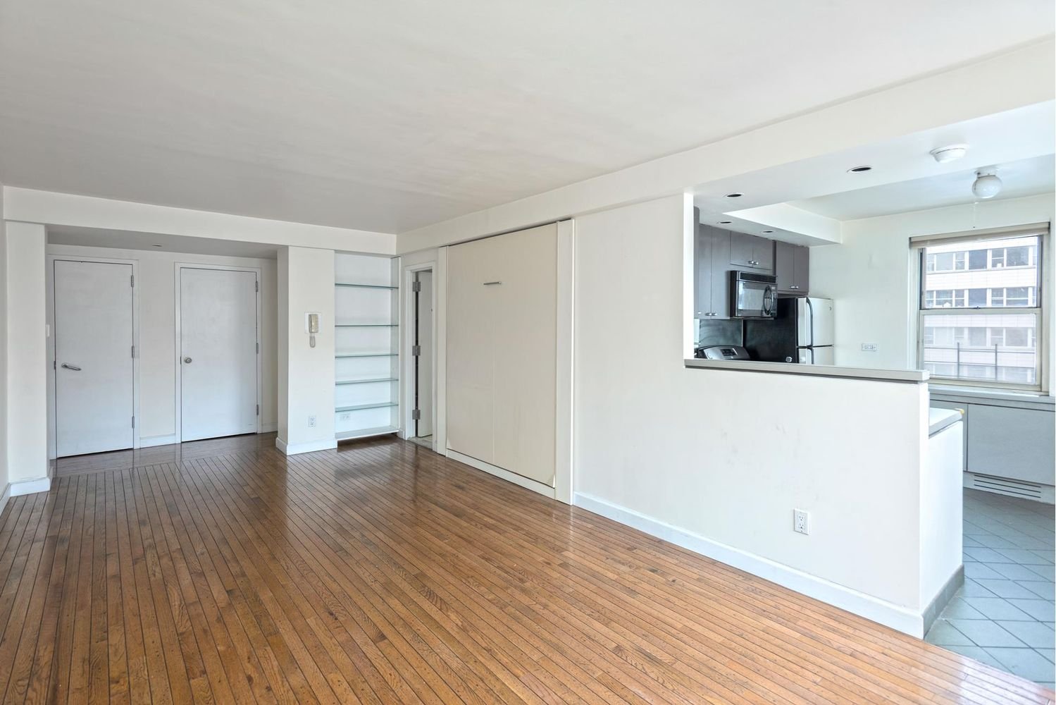 On a high floor, this corner alcove studio apartment has it all. Step into an entrance foyer which leads to an oversized living room/dining with a wall of windows facing west & south and flooded with sun and light with open city views. There is a wonderful murphy bed in the center of the room. The corner alcove windowed EIK is fully equipped with stainless steel appliances and plenty of storage. The large windowed bathroom has a stall shower and a large marble vanity. The apartment has wood floors, 3 closets, recessed lighting, and perfect for living and entertaining. The building is a full service doorman building with a live in resident manager, maintenance staff, storage and bike storage, beautiful roof deck, laundry room and garage located in a prime upper east side location close to all shopping, transportation and best restaurants to enjoy. Pets, co-owners and pied-a-terre are allowed. Truly a gem and must be seen .