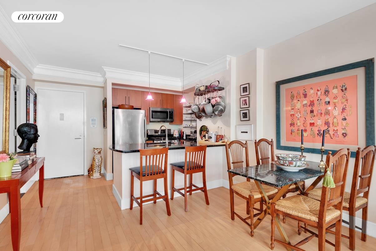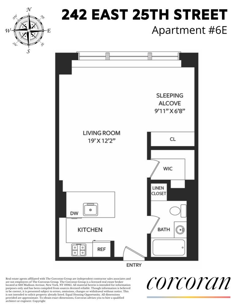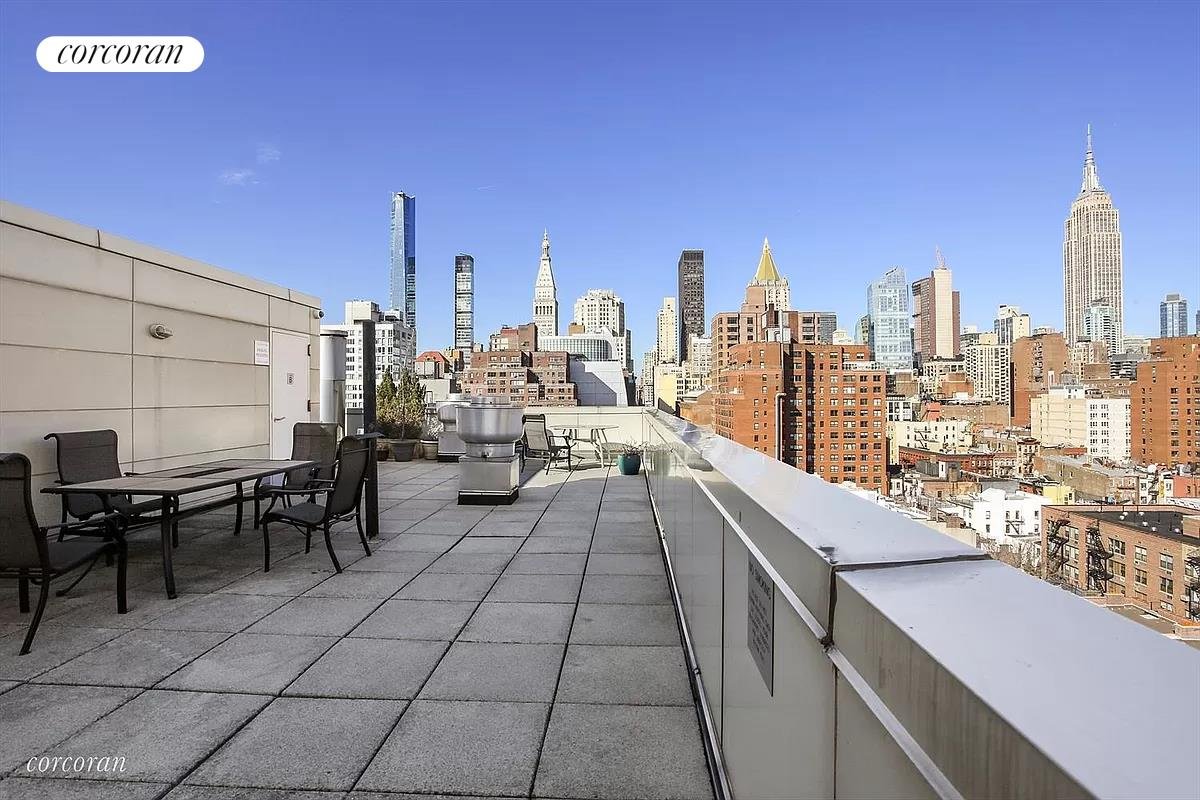 Welcome to 242 East 25th Street #6E! This property is a pristine alcove studio, with a pin-drop quiet North facing exposure. Located between Second and Third Avenues in Kips Bay, this apartment has it all! 242 East 25th street is condop with condo rules and permits investors, co-purchasing, guarantors, pied-a-terres, pets, immediate subletting, and no board interview! This impressive alcove studio features a thoughtfully designed open layout kitchen with stainless steel appliances from LG and Frigidaire, and granite countertops with a large island for ample room to eat and prepare meals. The large living room easily fits an oversized couch, coffee table, home office, and much more. The layout of the unit is versatile – you can keep the room light and airy by keeping the alcove area open or separate the area with a wall or a sliding door for additional privacy. This apartment also features abundant storage space, with a double-wide closet by the sleeping area and a walk-in closet off of the living space. The bathroom offers a linen closet with a washer/dryer hookup, which can easily be converted into a laundry closet. 242 East 25th Street is a full-service condop (a co-op with condo rules) with a full-time doorman (8am-midnight, 7 days/week), and a live-in super. The building includes a state-of-the-art fitness center, laundry room, bike storage, common storage, and a gorgeous roof deck with spectacular views! The condop permits investors, co-purchasing, guarantors, pied-a-terre use, pets, immediate subletting, and no board interview is required! Pets are permitted. Up to 80% financing is allowed. The ideal Kips Bay location is in close proximity to the East River and Madison Square Park, along with the best shopping, supermarkets, and restaurants! Please inquire for more details about the building’s land lease. This could be your beautiful new home! Treat yourself to a viewing of Unit 6E at 242 East 25th Street in beautiful Kips Bay. Call today for a private tour.