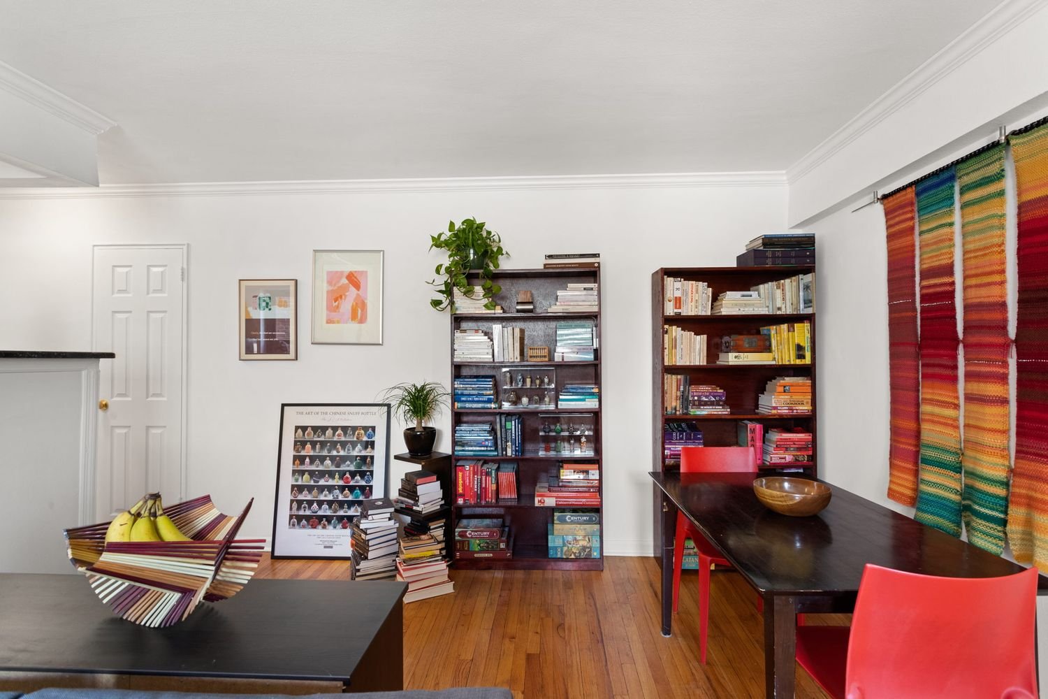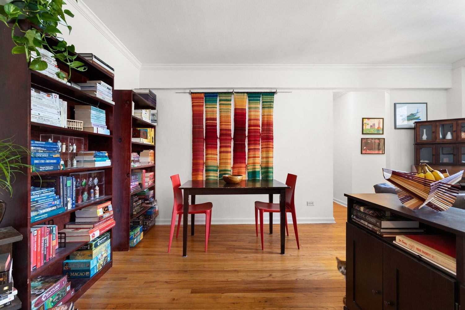The kitchen’s open counter corner allows you to catch up with guests as you prepare pre-dinner bites to be served in what you’ve made into a friendly dining area. You could also set up a sizable home-office or library in the living room – the possibilities are endless.