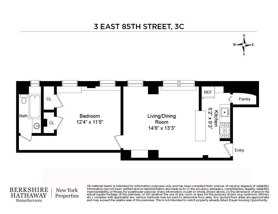 Located steps to Central Park and Museum Mile, this charming apartment is a perfect pied a terre or full-time residence. Three East 85th Street is a boutique prewar building that exudes charm from the moment you arrive in the gracious lobby. The building has been beautifully renovated and manages to keep the best of the prewar elegance without sacrificing modern conveniences, which includes a full-time resident manager. Entering Apartment 3C, you will be greeted by a traditional entry hallway, and notice the 10′ ceilings throughout the apartment. The entry hallway leads you to the kitchen, which is open to the living room, providing great flow for your day-to-day living. There are granite counters, stainless steel appliances, ceramic flooring, and an enormous walk-in pantry. The living/dining room is very spacious with two large windows providing east light. There is hardwood flooring throughout the living room and bedroom. The bedroom is over-sized, and exceptionally quiet. There are two very ample closets. The building is pet friendly and allows 70% financing. There is a building laundry, and the apartment transfers with a storage unit. Located in the prime neighborhood of the Upper Eastside, you will enjoy many of the best restaurants and boutique shopping in Manhattan. You will also have access to six different bus lines, and an express stop is just a few blocks away. It is truly a perfect home.