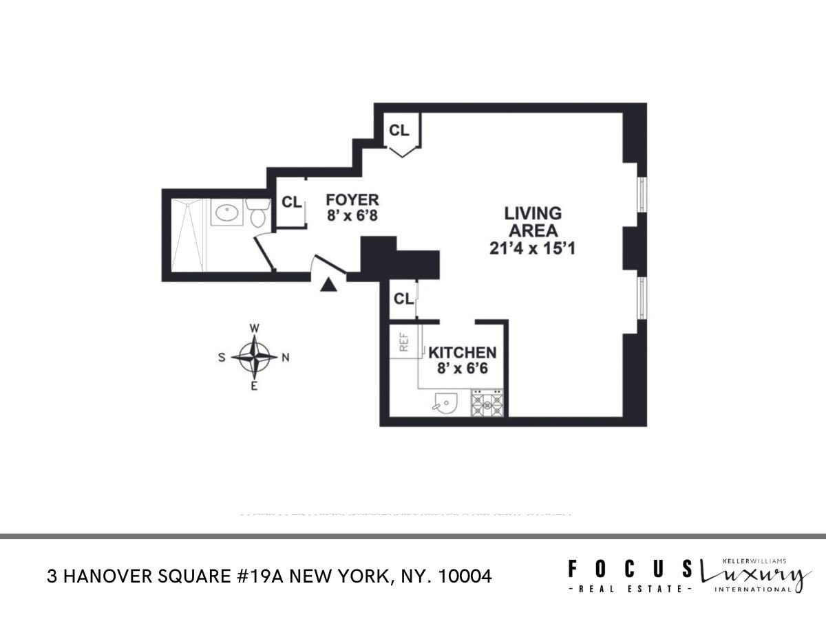 #19A at 3 Hanover Square is your unique opportunity to experience the finest of downtown living at a bargain value! Nestled on a high floor, this renovated alcove studio (convertible one bedroom) provides a great configuration and endless possibilities for live, work and leisure. Upon entering the modest yet gracious foyer, you will encounter the updated bathroom and a generous coat closet. As you continue, the main room opens up into a spacious living area, separate alcove (most commonly used as the bedroom area) and a separate high end kitchen. The living area can comfortably accommodate a variety of furniture including a sectional couch, coffee table, desk and high table and the alcove space is queen-sized. Two northern facing windows with Juliette Balconies provide a steady stream of sunlight. The separate kitchen is a chefs dream, featuring sleek white finishes, high end stainless steel appliances, ample counter space and plenty of storage. Dark-stained hardwood floors abound throughout the unit and new light fixtures have been added to enhance the space. The bathroom embodies a similar aesthetic with a simple yet elegant vanity, dark-stoned floors and a stall shower. The unit features approximately 9 ft ceilings throughout, and many units have expanded their ceilings an additional 1-2 ft. The unit contains three large closets and the building provides additional storage at no additional cost! Formerly the Cotton Exchange Building, 3 Hanover Square is a premier pre-war co-op with a suite of amenities including full-time doorman/concierge, live-in supervisor, laundry rooms on every three floors and free shared storage space. Located in the burgeoning Financial District home to a multitude of attractions such as The Oculus, Freedom Tower, Brookfield Mall, The Historic Southstreet Seaport District and within close proximity to the lush Battery Park City. Local dining favorites include Eataly, Ciprianis, Delmonicos and Jean-Georges newly opened Tin Building, an acclaimed food hall featuring a variety of delectable cuisines. Whole Foods at 1 Wall street will be a highly anticipated addition to the neighborhood. Transportation options are plentiful with the majority of train lines (A/C/E, 2/3, J/W) converging at Fulton and Wall. Seller incentive! Seller is offering a $400 monthly maintenance credit for the first year of ownership. Listed maintenance reflects this credit. Please inquire for more info.