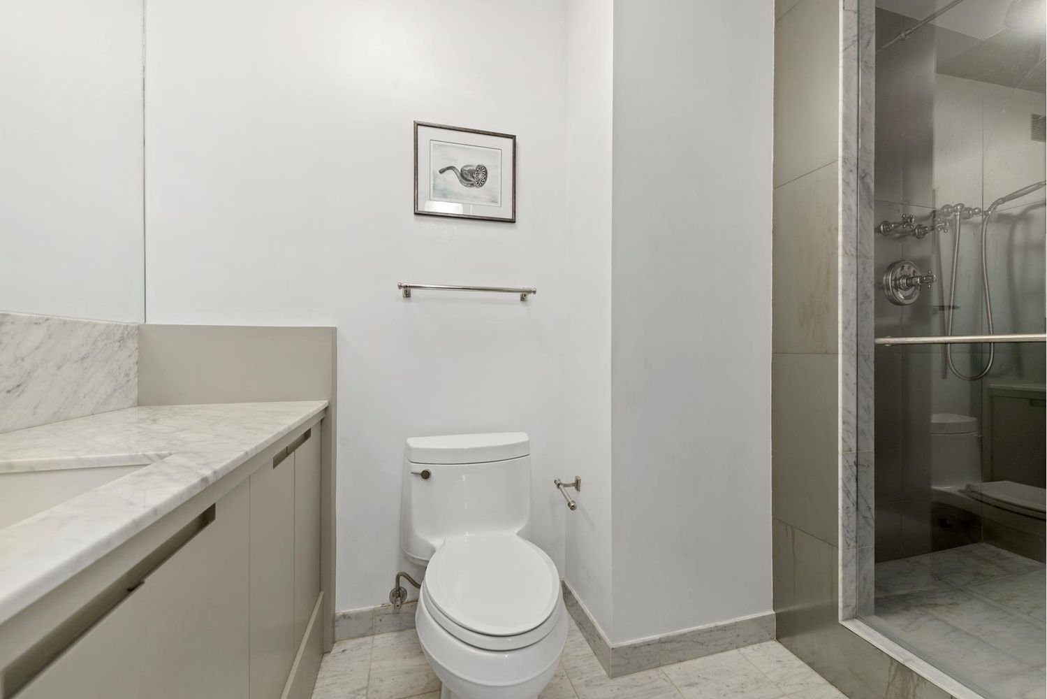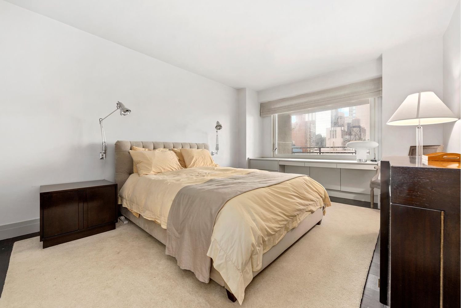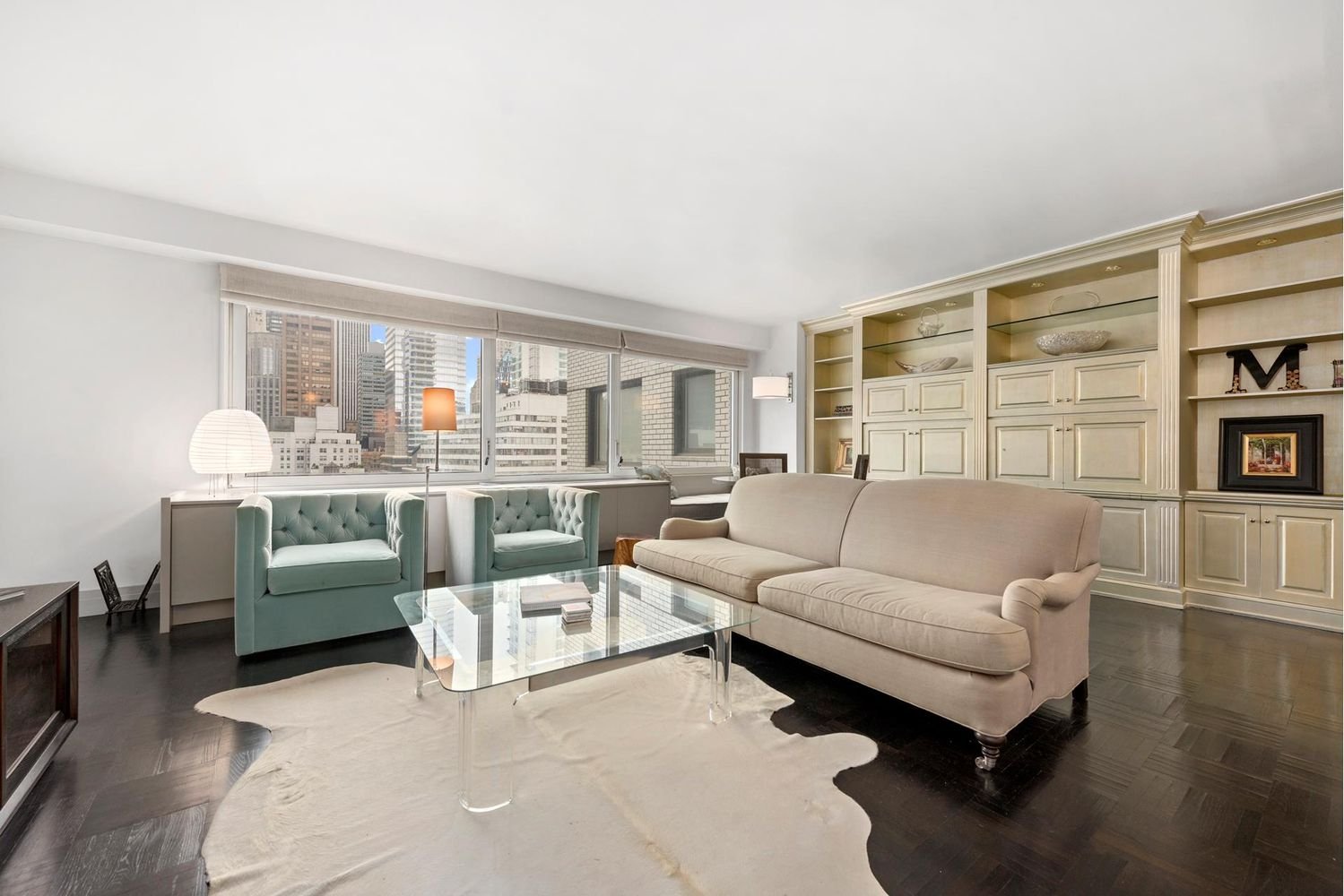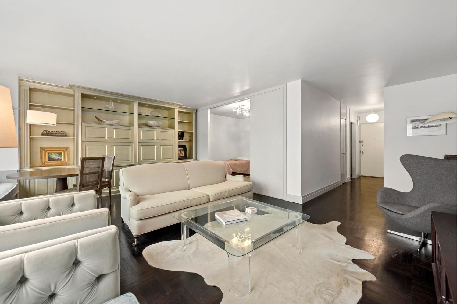 Deal fell through. Price Reduction! Welcome home to this mint, barely lived in junior 4 already converted into a 2 bedroom with 2 FULL baths. Designed by the renowned Neil Beckstedt Studio the apartment features a brand new renovation, open city views, and a west facing balcony. The sunny and spacious living room was adapted to include tasteful built in cabinets, a lovely window banquette, as well as an office/second bedroom with pocket doors to open and close the space as needed. Rounding out the public space is a renovated kitchen with Miele coffee station and Subzero refrigerator. The powder room was converted to a full bath allowing the primary bath to remain private. The primary bedroom has open views, an ensuite bath, and large walk-in closet with Bosch washer/dryer. The newly renovated bath was custom designed with Italian marble and boasts a stunning vanity and shower. The gorgeous wood floors were just sanded and stained. This white glove building located on Billionaire’s Row has a circular driveway and a staff of roughly forty including 24 hour doormen and concierge. There is a package room and dry cleaning on premises. The large gym, with a salt water pool and deck is a coveted building amenity. In addition, enjoy access to a 24 hour garage (extra charge) and central heat/A/C and laundry room. Pied a terres and pets are permitted.