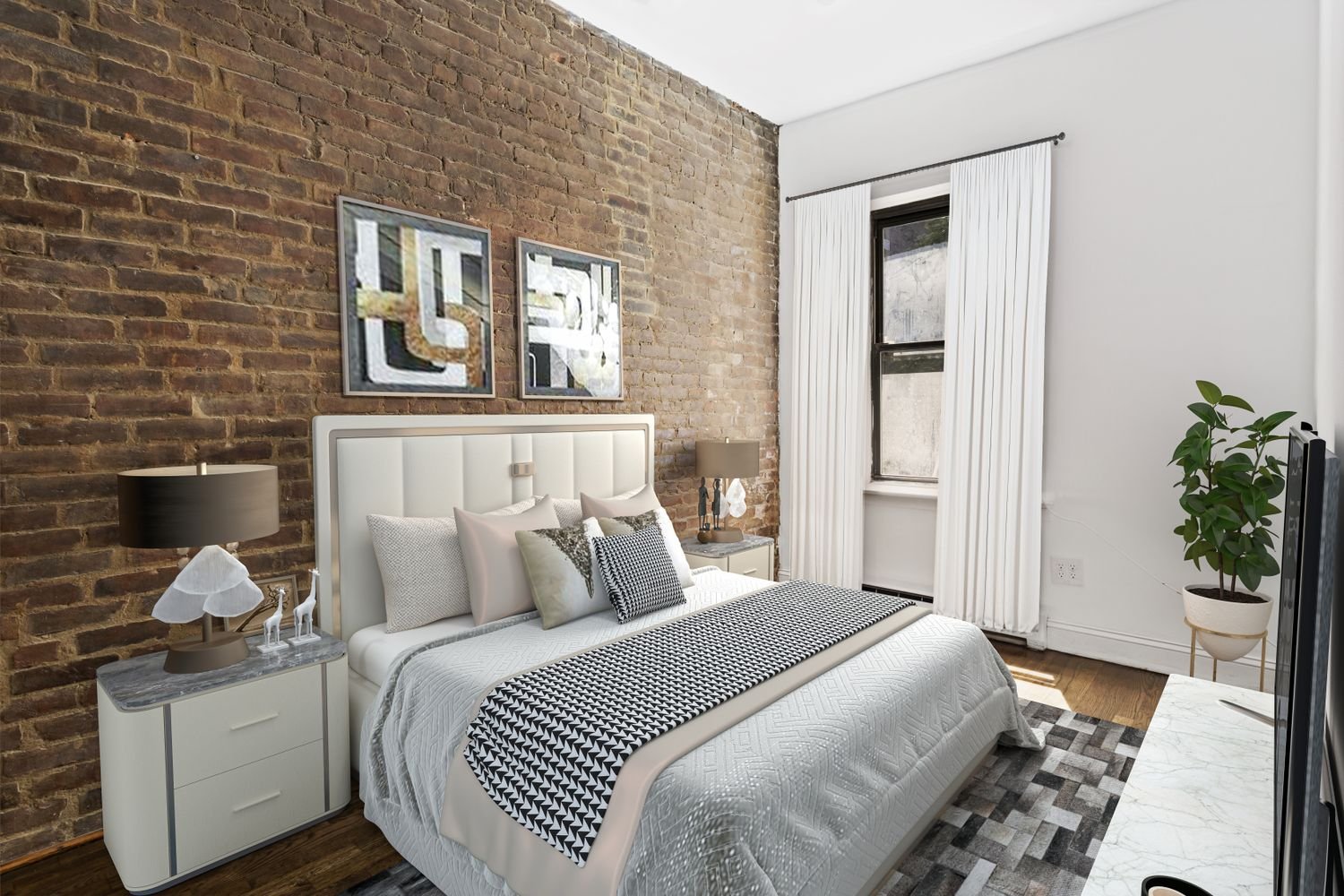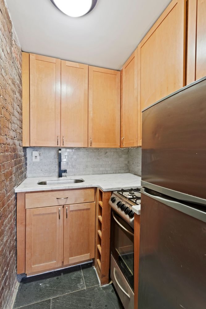 Red Oak Hardwood floors line the entire apartment with a beautiful functional fireplace in the living room. The kitchen comes with quartz counter top, plenty of cabinets and stainless steel appliances. The bathroom has been gut renovated. The bedroom fits a queen size bed with additional furniture. Washer/Dryer In the Unit!
