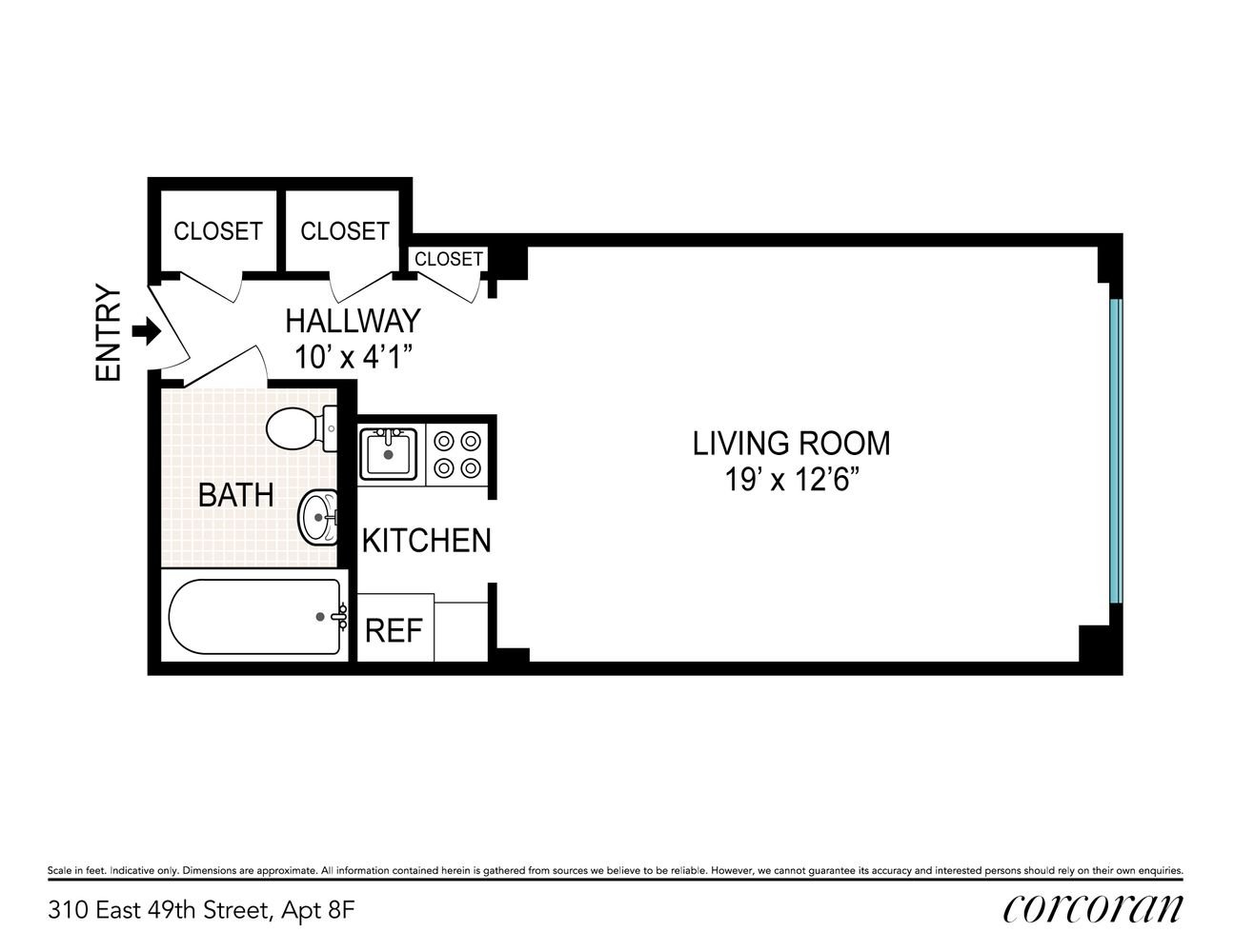 Welcome to #5F, the ideal home for those wanting to live near work with Midtown Manhattan just blocks away. As you enter the spacious studio unit, you’re met with not just one, but three closets. The generous living space is complete with separate kitchen, hardwood floors, and through-wall AC unit. 310 East 49th Street is a full-service, elevator co-op with a full-time doorman, on-site superintendent, immaculate laundry room, and open roof deck basking in city views with glimpses of the East River. Bike storage and additional on-site storage is available for a monthly fee. Located in the heart of Turtle Bay in Midtown East, the north-facing studio overlooks a beautiful, tree-lined block of East 49th Street. Grab your daily pick-me-up at Remi Flower and Coffee and enjoy local food and beverage classics Sipsak, The Smith, Smith & Wollensky and Chateau 49. This location affords easy access to the E, M, 4,5,6 & 7 subway lines, grand central station and Metro North. This pet friendly building is also just 1 block away from Peter Detmold dog park. Co-purchasing, Guarantors, and Pied-a-terre are all permitted with board approval. Subletting allowed after three years of ownership.