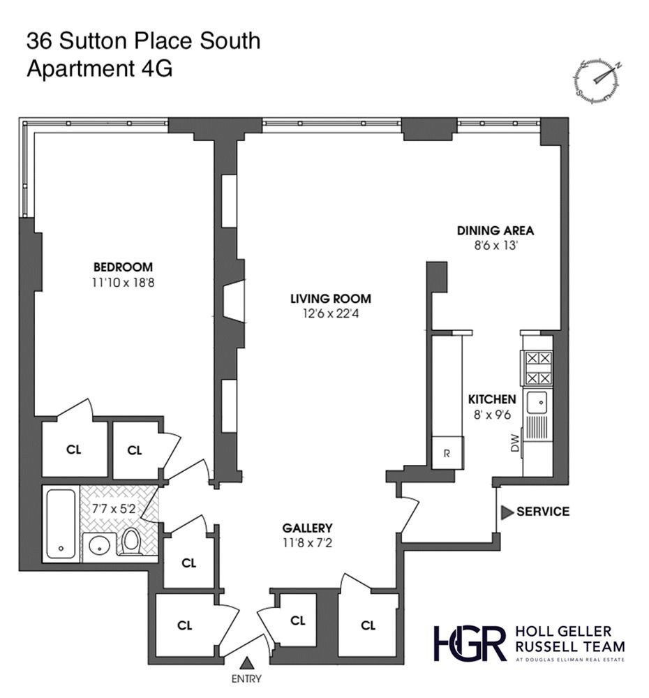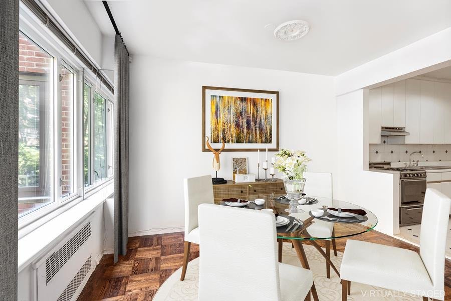 Incredible Value on Sutton Place. Apartment 4G provides a fantastic blank canvas for the lucky buyer to create a gorgeous home in the heart of Sutton Place South. Enter this oversized Junior 4 apartment into the large foyer which leads to a beautifully proportioned living room and dining room nook, both of which overlook the building’s tranquil planted garden. The large corner primary bedroom has two oversized closets and similarly overlooks the gardens and private tennis club adjacent to the building. The apartment has terrific storage with 6 large closets. 36 Sutton Place South is an impeccably run white-glove cooperative, with full-time doormen, full staff, and live-in resident manager. The building has storage in the basement, a breathtaking roof deck with gorgeous water views, a serene garden patio, and a brand-new fitness room. Washer/Dryers are permitted in-unit with Board Approval. No dogs allowed.