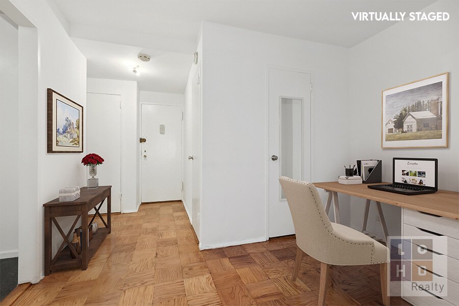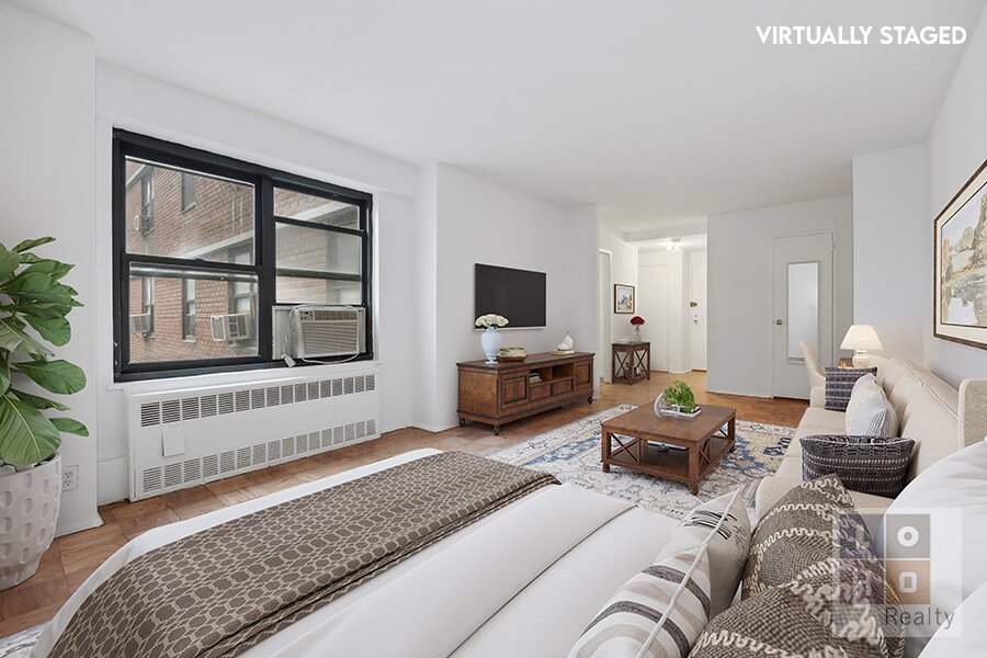 Large studio available in the highly desired Seward Park co-op! The main living area of this generously proportioned studio (with double-width windows facing east), can easily be converted into a 1-bedroom apartment simply by adding a wall at the far end (alt. floorplan included). To the right of the living area is the full sized, eat-in kitchen (windowed). The wall between the living area and kitchen can be opened up to create a pass through and dining island or be completely removed for an open lofty feel. Three (3) large closets and newly refinished parquet floors throughout. Co-op amenities (additional fees & wait lists may apply) include 2 private parks complete with playgrounds & water park, a fully equipped fitness center, indoor children’s playroom, 24/7 lobby attendant, 24/7 modern laundry room, on-site maintenance, community garden, composting, bike storage, shared workspace, and community room complete with modern kitchen for events. Short walk to Trader Joes, Target, Regal Cinemas, Essex Market and more! Subleasing after 2 years of ownership. Shareholder required continuing to pay base maintenance in addition to a sublet fee. Dogs allowed subject to registration/approval. Washers / dryers allowed in-unit pending co-op approval.