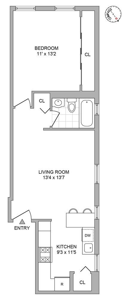 This top floor residence is a cheerful oasis of quiet and calm. Oversized windows in both the living space and bedroom provide wonderful S/W light throughout. The large windowed cook’s kitchen features a Bosch dishwasher, dining bar and loads of storage. The windowed bathroom has a bathtub, porcelain tiles, vanity storage and large adjacent linen closet. The king sized bedroom has an entire wall/closet with customized Elfa shelving. Ample room for both living and working as desired.