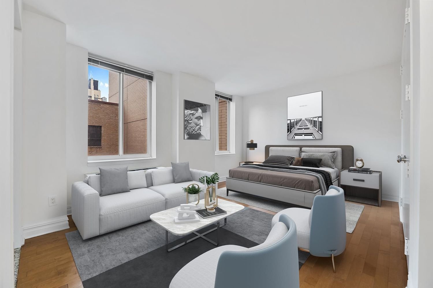 Bright studio apartment with southern views in a full service luxury building. The apartment features double closet space, beautiful maple floors throughout and marble bathroom. Open kitchen equipped with stainless steel appliances and granite countertops. Perfectly located on the Upper East Side, this luxury building with exceptional amenities features high-quality finishes, including granite countertops and marble baths. Building amenities include 24-hour doorman and concierge, recently renovated lobby, complimentary fitness center, roof deck with 360-degree views of the city, full-service garage, bike room, children’s playroom, laundry room, and is pet-friendly. These pictures are from an identical unit on a lower floor. This unit, 10P, has the same floor plan as listed above. Updated Pictures with correct views outside apartment window to follow. Special assessment of $467.20/month for capital improvements of hallway, elevator and facade.