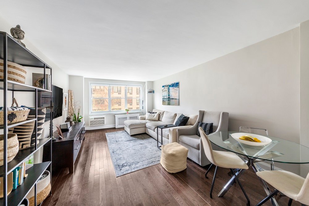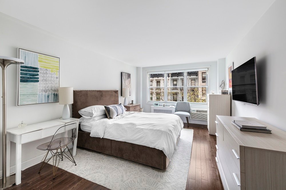Bring offers – yorkville gem-motivated seller Move right into this welcoming bright, light renovated one bedroom with southern exposure, tree-top views in this charming 24hr doorman, live in super, Yorkville building. There are new hardwood floors throughout the apt, new baseboard moldings, custom closets, new windows, thru-wall A/C and CAT-5 wiring in living room and bedroom. Upgraded electric, new windows. The spacious living room is large enough for a dining area, full size living area and work space. The king sized bedroom has a large double closet as well as another which can be used for additional storage. There is space to create a walk-in if desired with room to spare for a king bed and furniture. Kitchen has black granite counter-tops and stainless appliances and the bathroom has recently been renovated with a new vanity. Enjoy the view and the serenity on one of the nicest furnished roof decks around.