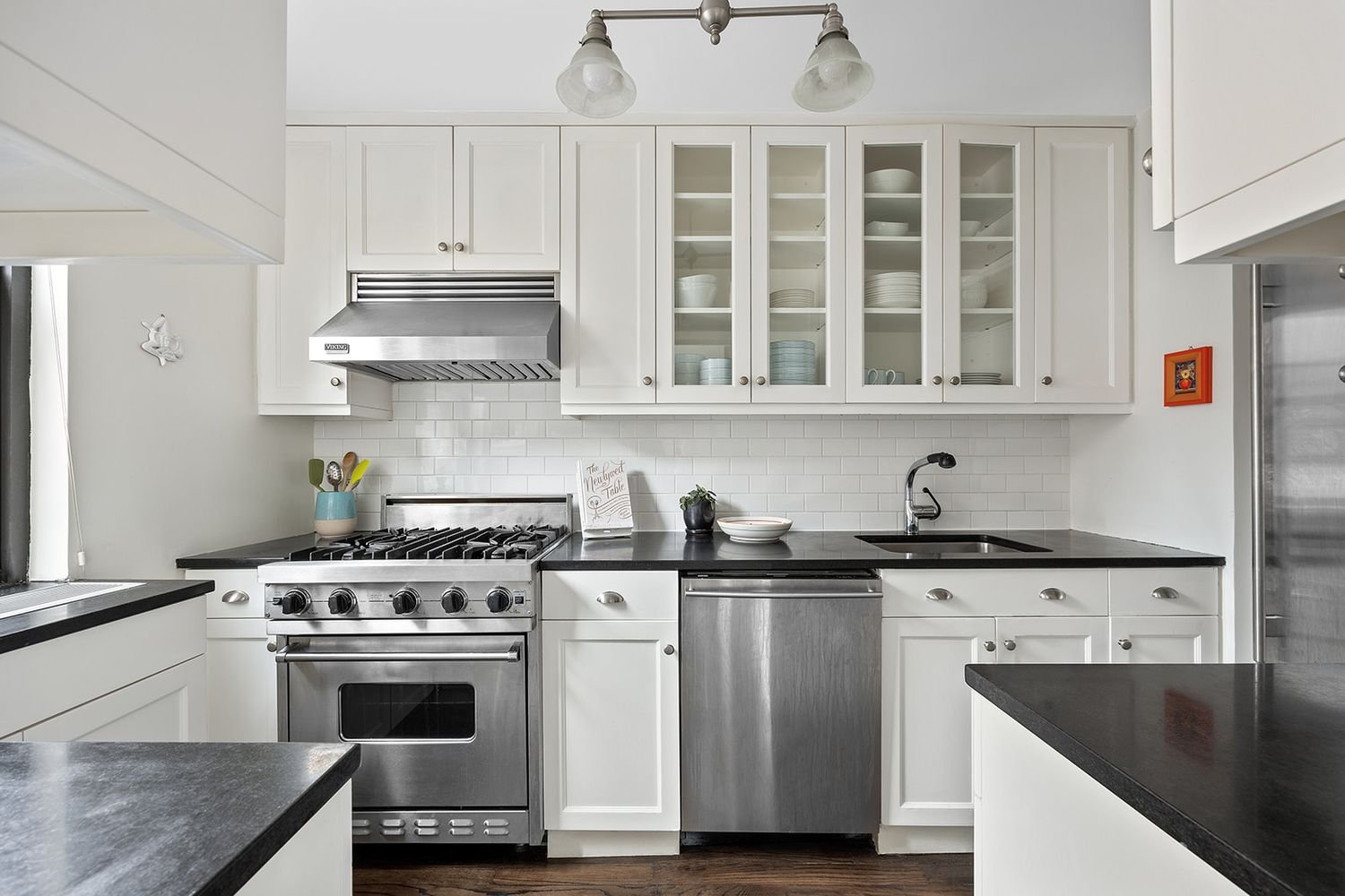 The wide entry foyer with large closets on either side leads you to the bright airy, sun-filled and pin-drop quite living area. The large, windowed kitchen with French doors features modern stone countertops, hardwood flooring, Sub-zero refrigerator, Viking range and hood and a Bosch dishwasher. The Master bedroom is large enough for a king bed, features custom closets and a fully updated master bath with enormous walk-in shower. The second bedroom is large enough to serve as a guest room and home office. The second bath opposite the bedroom is completely updated with a deep bathtub.