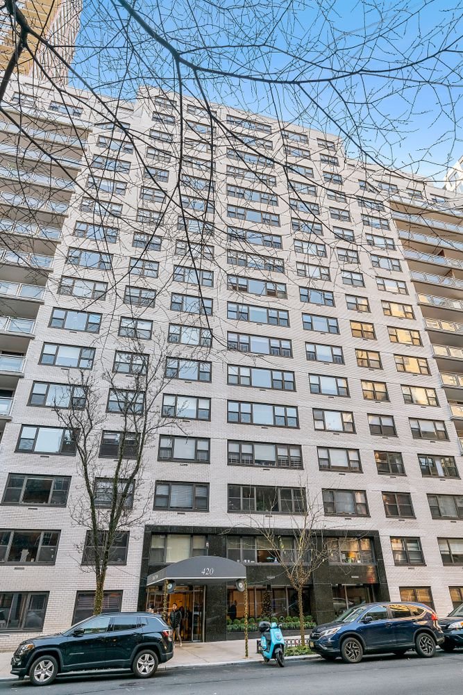 420 East 72nd Street is a postwar white brick cooperative offering 24-hour doorman and concierge service, a live-in superintendent, recently updated common areas, laundry and a separately owned on-site garage accessible from within the building and discounted for shareholders. Guarantors, co-purchasers, pets, in-unit washer dryers and 75% financing are permitted with board approval.