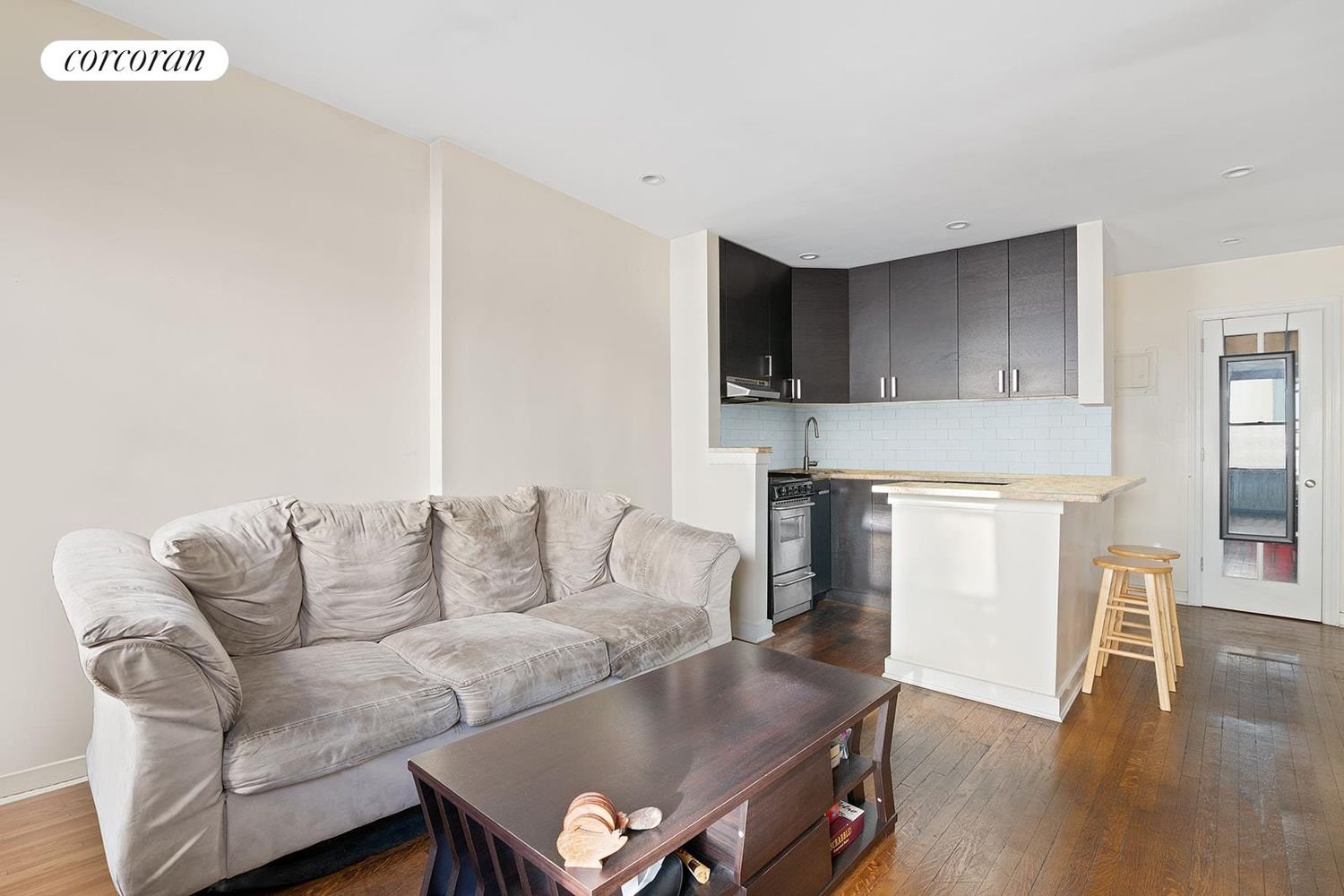 Investor’s friendly! Cash buyers only. This turn key, gut renovated junior 1 bedroom 1 bathroom apartment features a modern open floorplan and generous closet space. Elegant and modern kitchen with stainless-steel appliances and a peninsula with a breakfast-bar for 3. Sleek marble tiled bathroom and a spacious bedroom which comfortably accommodates a queen size bed with furniture and has a large closet. Courtesy of Corcoran