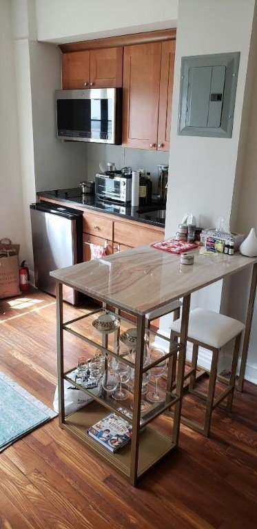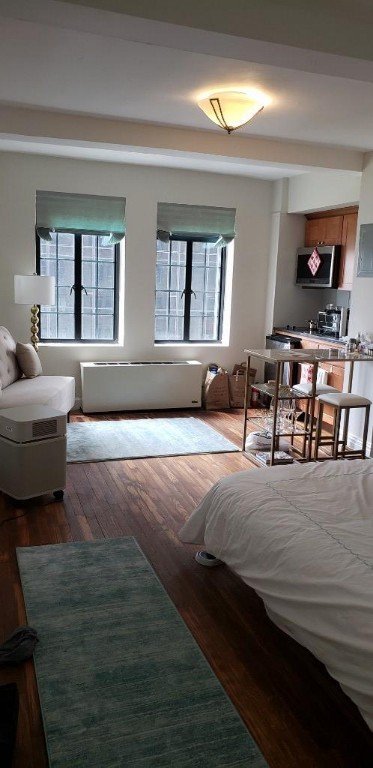LARGE Sunny QUIET Studio -Southern Exp w RIVER VIEWS – Renovated – 4 CLOSETS – ELECTRIC Included in MT! Spacious & flooded with light , this SOUTH facing studio is a very special unit . Double paned noise cancelling casement windows make this extremely quiet and a thru wall installed AC/Heat combo unit is already installed. Newly renovated with open kitchen featuring beautiful cherrywood custom cabinets,granite counter, glass induction cooktop and stainless appliances including under counter fridge and microwave oven. Classic 1920’s bath with subway tile, deep soaker tub and pedestal sink add a bit of pre war charm. Hardwood floors , high ceilings along with an abundance of closets , including 2 extra wide,( one with shelves /drawers for sheets towels etc , one double hung) mean loads of storage. Windsor Tower is an immaculately kept co operative located in a unique midtown oasis, Full service with 24 HR Doorman , 24 Hr Laundry and Gym on premises ( small fee) . Enjoy the convenience of a mini-mart with cash machine right downstairs in the lobby, along w cafe, dry cleaner/tailor, post office & WINE SHOP all there in the bldg. Steps from Grand Central yet peacefully tranquil in a suburban -feeling setting , with privately maintained parks, yet easy Midtown East access to all you need. Pied a Terres , parents buying for children permitted. Unlimited subletting is allowed after 3 years of owning with Bd approval, Pets OK (including DOGS) . Windsor Tower is a non smoking bldg.