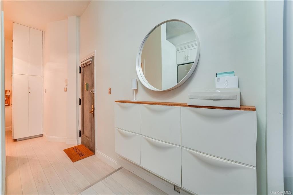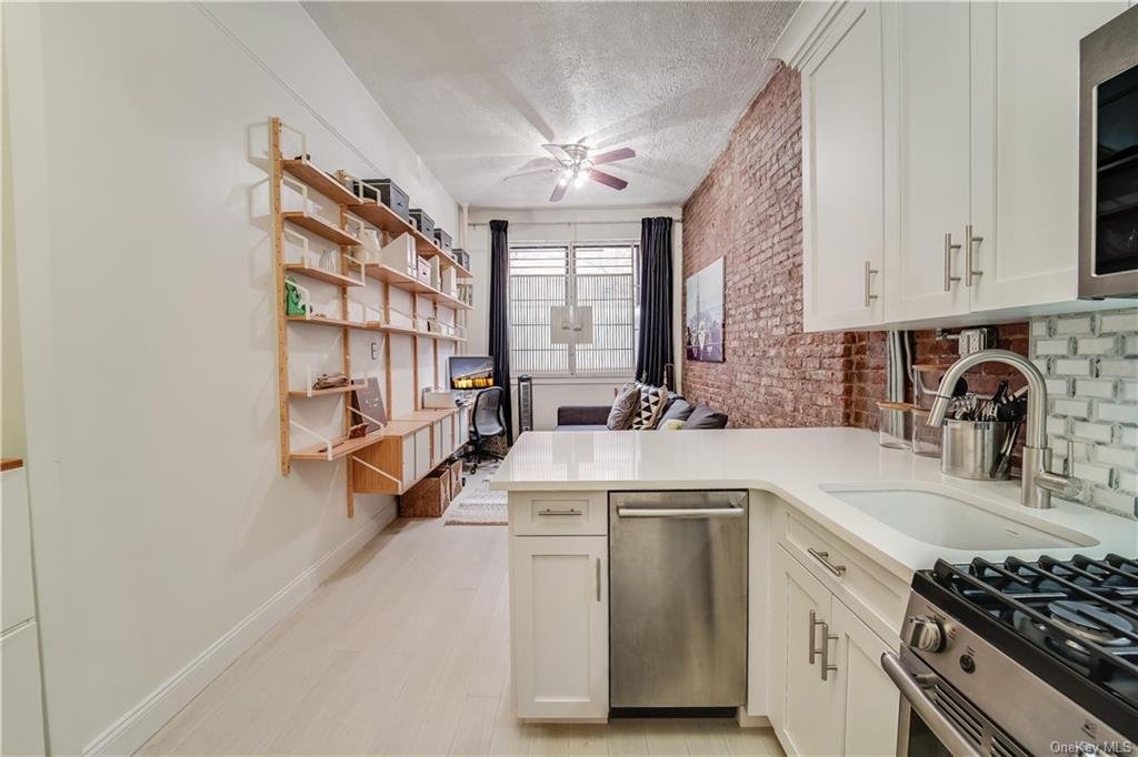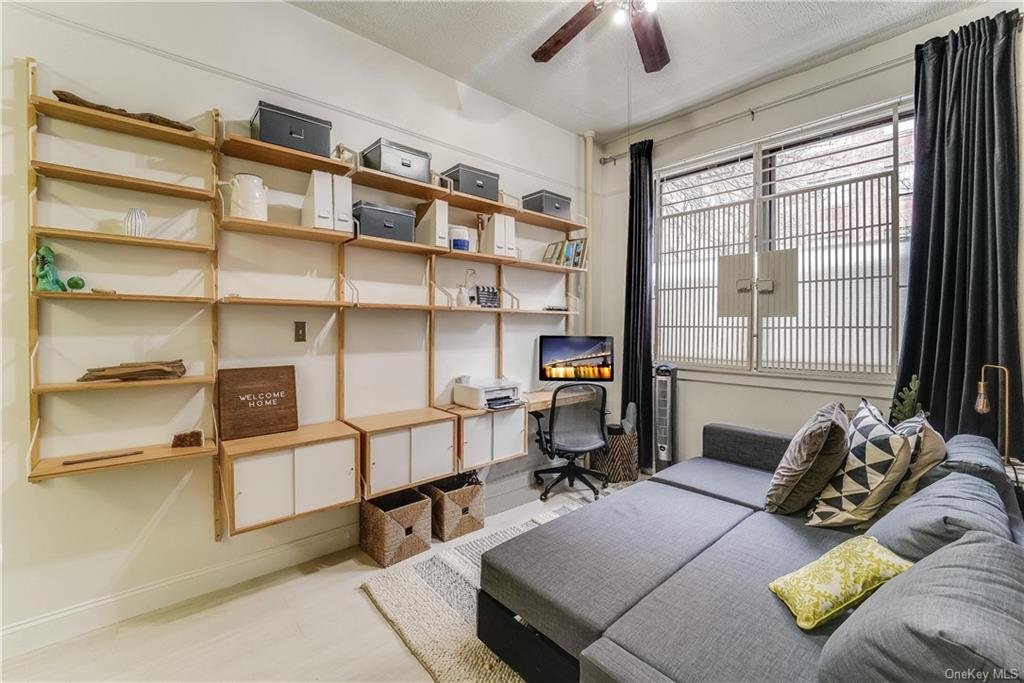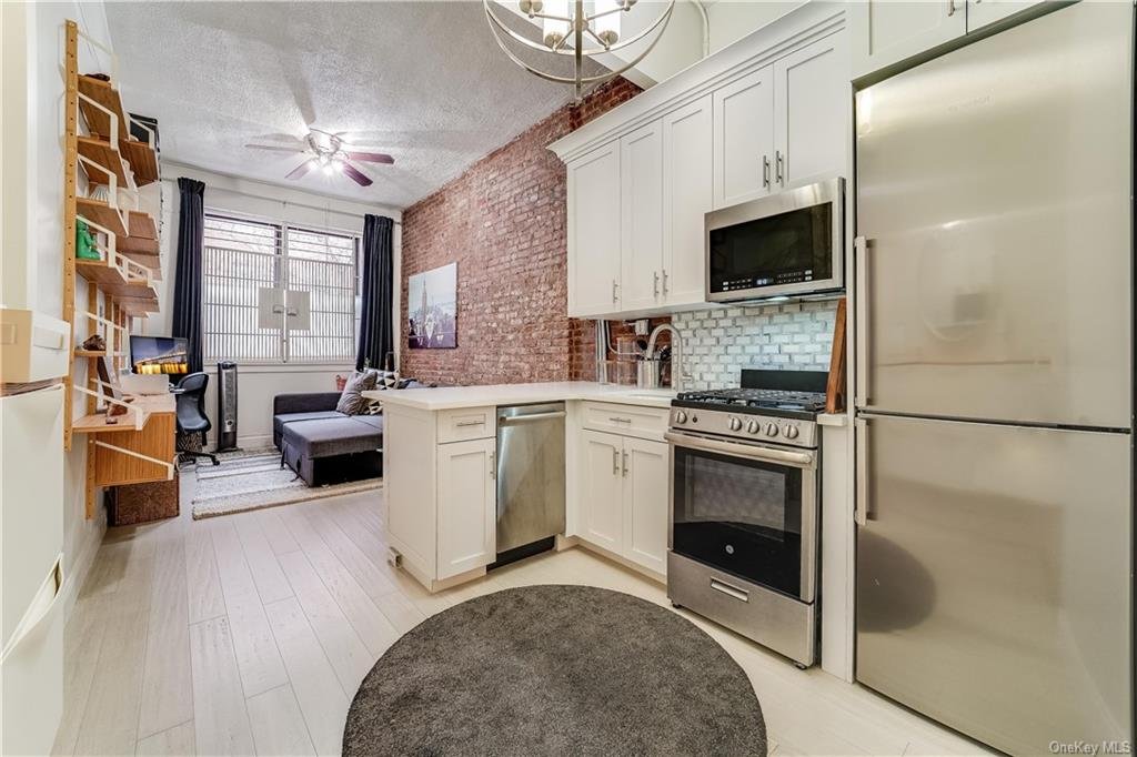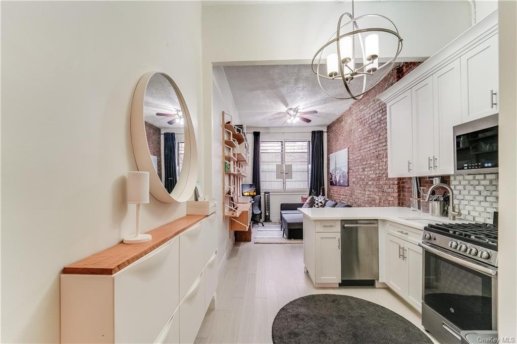 This fully-renovated unit features a stainless steel kitchen, 9′ ceiling heights, eco-friendly bamboo flooring throughout, and exposed brick, making it your quintessential East Village pad. The spaces within the unit are consciously arranged to maximize the separation of living/sleeping areas. Home can be sold with or without furniture. This unit is on an elevated first floor. A communal courtyard for the co-op residents is available 24/7 and can also be reserved for private use. The apartment comes with multiple dedicated storage spaces outside the unit, including a 9′ closet across the hall with ample shelving and a dedicated 6’x 6′ storage lot in the basement. This location is also a commuter’s dream, right off the 1 Ave L and a few blocks from the F train and the crosstown bus. Located on a quiet, tree-lined one-way street with a separate bike lane and CitiBike station steps from your home Gifting, co-purchasing, cats and subletting are allowed upon board approval.