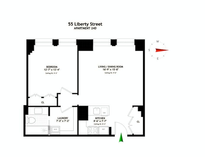 For the open house – contact me for a confirmed appointment time. EXCELLENT CONDITION, SUNNY MOVE IN READY 24TH FLOOR 1-BEDROOM HOME – You have arrived into the foyer which unfolds into the living area, to the right is a double wide coat closet, and to the left is the updated kitchen. The open custom designed kitchen is great for entertaining, and includes: Many cabinets, professional grade stainless steel appliances, and beautiful countertops. The spacious bedroom easily accommodates a king size bed, and 2 bedside tables, storage cabinets, and a desk. From the bedroom, there is a large 7’2″ X 7’2″ walk-in closet, and a washer and dryer. The serene spa style bathroom has custom designed tiling, spacious shower, medicine cabinet, and under counter storage cabinet. Overall features of this 785 gross square foot home include; a double wide coat closet, wall of closets in the bedroom, hardwood floors, window treatments, and window air conditioners. There are four oversized western facing windows, allowing for great afternoon/golden hour sunlight and city/sky views. The maintenance (up to $10,000 per year tax deductible) includes gas, water, and radiator heat. Liberty Tower is pet-friendly, and efficient staff includes friendly 24-hour doormen, porters, and a live-in superintendent. The side entrance on Liberty Place allows convenient loading and unloading from your car. Designed by Henry Ives Cobb, Liberty Tower was upon its completion in 1910 “one of only a handful of skyscrapers,” according to The New York Times. “Its striking Gothic style, the centuries-old inspiration for cathedral spires that reach into the sky to approach the divine, is central to the tower’s romantic appeal,” and the terra-cotta facade is richly adorned with birds, alligators, flowers and gargoyles. Designated a city landmark in 1982 and added the following year to the National Register of Historic Places, the building also received a preservation award from the New York Landmarks Conservancy in 2010. Neighborhood amenities include dining and shopping at the Oculus, Eataly, Brookfield Place and the new Seaport. The brand new Whole Foods is now open. Many subway lines at the Fulton Center and the WTC Path station are moments away.