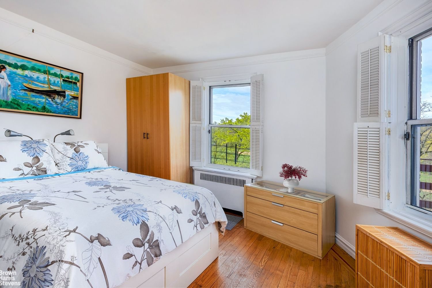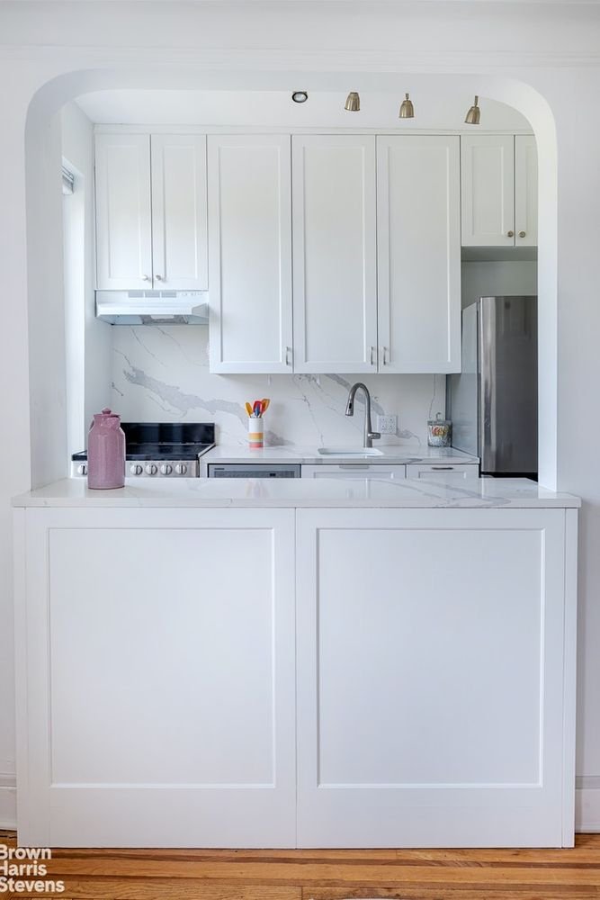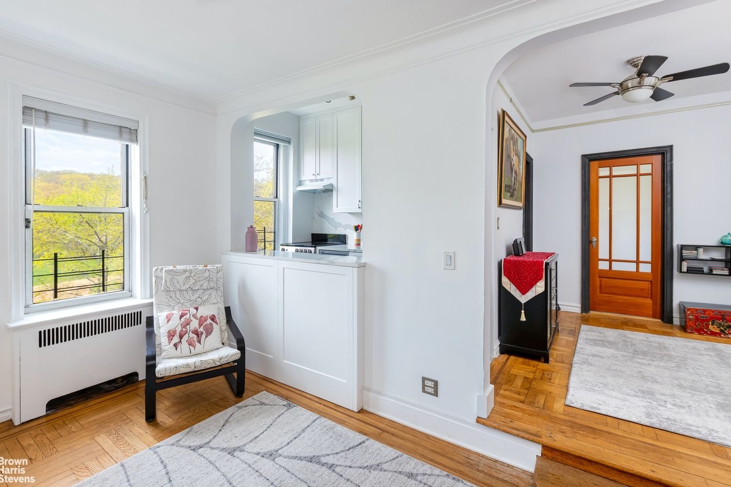 This renovated, commuter-friendly, park-facing Inwood 1-bedroom is full of sun and magic. Set on a one-way street with two views of the park, Henry Hudson Bridge, and treetops in the distance, you are a few minutes away from exciting Columbia University fields and boathouse, express train to the city, dining and services! This apartment features real hardwood floors, bright and renovated kitchen and updated bath, ceiling fans and high ceilings. Also enjoys rare cross-breeze layout, and many hours of sunlight into the evening. A welcoming foyer leads you to a bright recessed living room with space for home office, dining table, entertainment center and guests! Newly renovated, windowed pass-thru kitchen enjoys extra counter space, quartz counters and beautiful storage and cabinetry to the ceiling. Corner bedroom is spacious and welcoming and looks out at the treetops. And lastly, your windowed, renovated bathroom enjoys a sanctuary feel with beautiful colors, gorgeous custom doors, new tile, and classic soaking tub. The Inwood community is a wonderful place to call home. A nature-lover’s paradise with parklands flanking the salt marsh, you can watch the resident swans or hike through the historic woodlands, and still meet friends for dinner a few blocks away. Inwood Hill Park is your personal backyard, where the Hudson and Harlem Rivers meet. Home to the Inwood Park Nature Center, its lawns host picnics and play, and offers tennis and basketball courts, ball fields and extensive hiking trails within the oldest living forest on Manhattan. With express and local trains, as well as buses, your commute is easily accommodated to midtown! Near cafes, dining, shops and services,.weekly farmer’s market and community resources and events. Treat yourself to the dream, in this conveniently located, beautiful home. 10% down, pet-friendly. Qualifies for Eagle Community Loan! Contact me today!