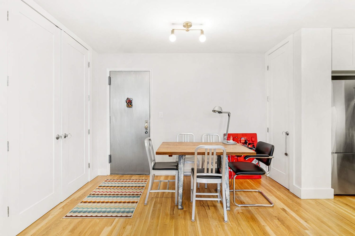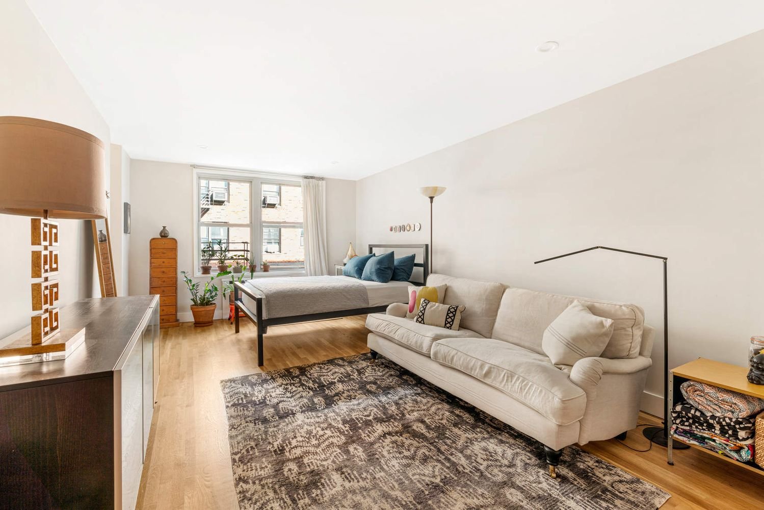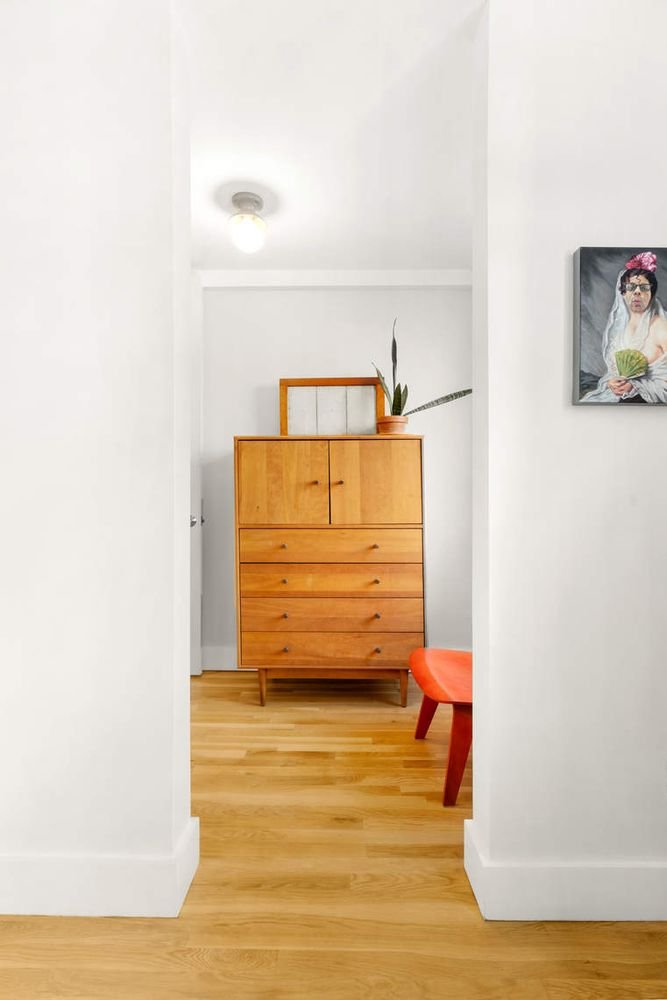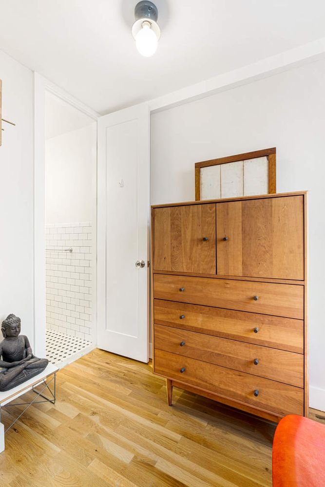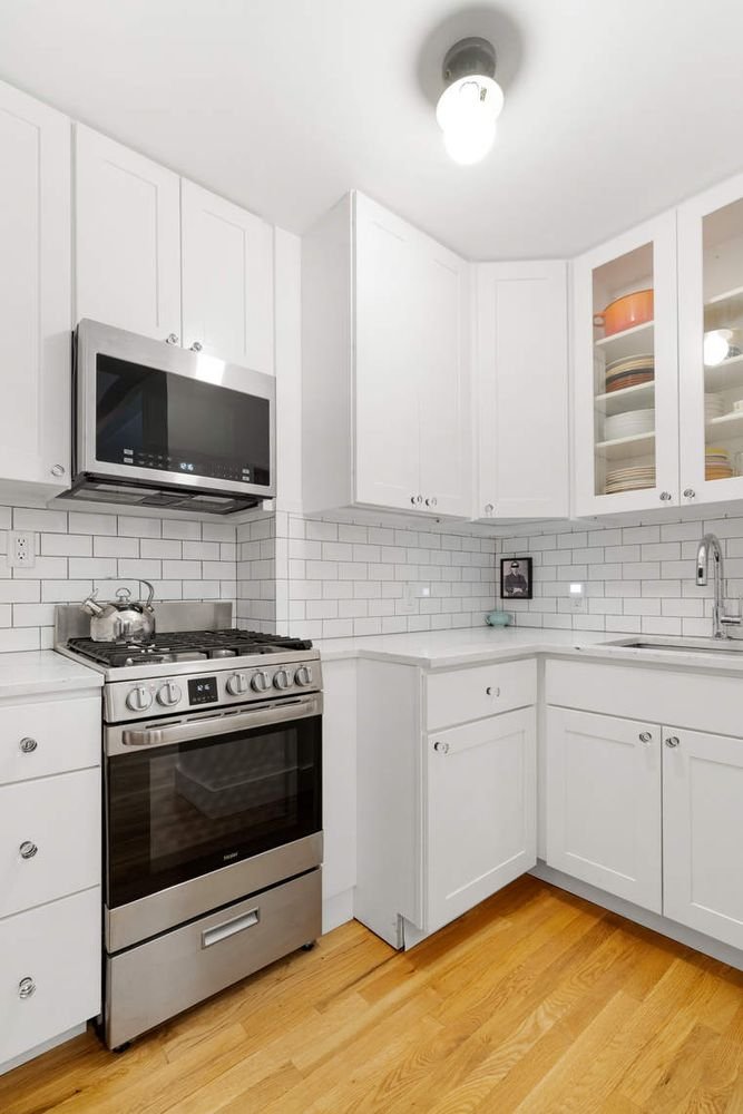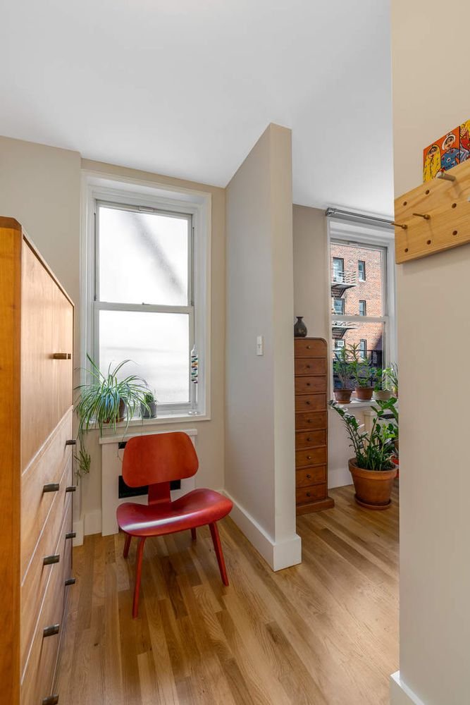 Residence 402 is a peaceful and bright studio that underwent a full renovation in 2019. The owner spared no expense to create a quality home, while maximizing the space and layout. Upon entering the apartment, there is an ideal area for dining, adjacent to the separate kitchen which includes stainless steel appliances, Caesarstone countertops and Columbia wood cabinets. Quietly set back from the street, the apartment boasts a generously proportioned main room and a separate windowed dressing area that leads into an elegant bathroom with a glass enclosed shower with built-in shelves, a porcelain pedestal sink and Toto fixtures. Other highlights of this well rounded home include new hardwood floors, floor-to-ceiling solid wood shaker-style closet doors with Emtek glass doorknobs, custom radiator covers, elegant light fixtures and recessed lighting. Washer/Dryer is permitted with board approval.