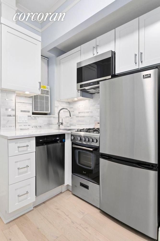 Come see this Beautiful impeccably renovated studio in Prime Carnegie Hill, just a block away from Central Park! Apartment will also be delivered with brand new furniture included in the sale. This well laid out studio offers a sunken living space, separate dining/kitchen area, windowed kitchen with brand new stainless appliances and tiled windowed bathroom. Apartment also features hardwood floors throughout, 2 large closets with ample storage space, and high ceilings. Located on a charming tree-lined block in a well-maintained elevator co-op with laundry in the basement and part time super. Building allows pieds-a- terre and co-purchasers as well. Photos are virtually staged.
