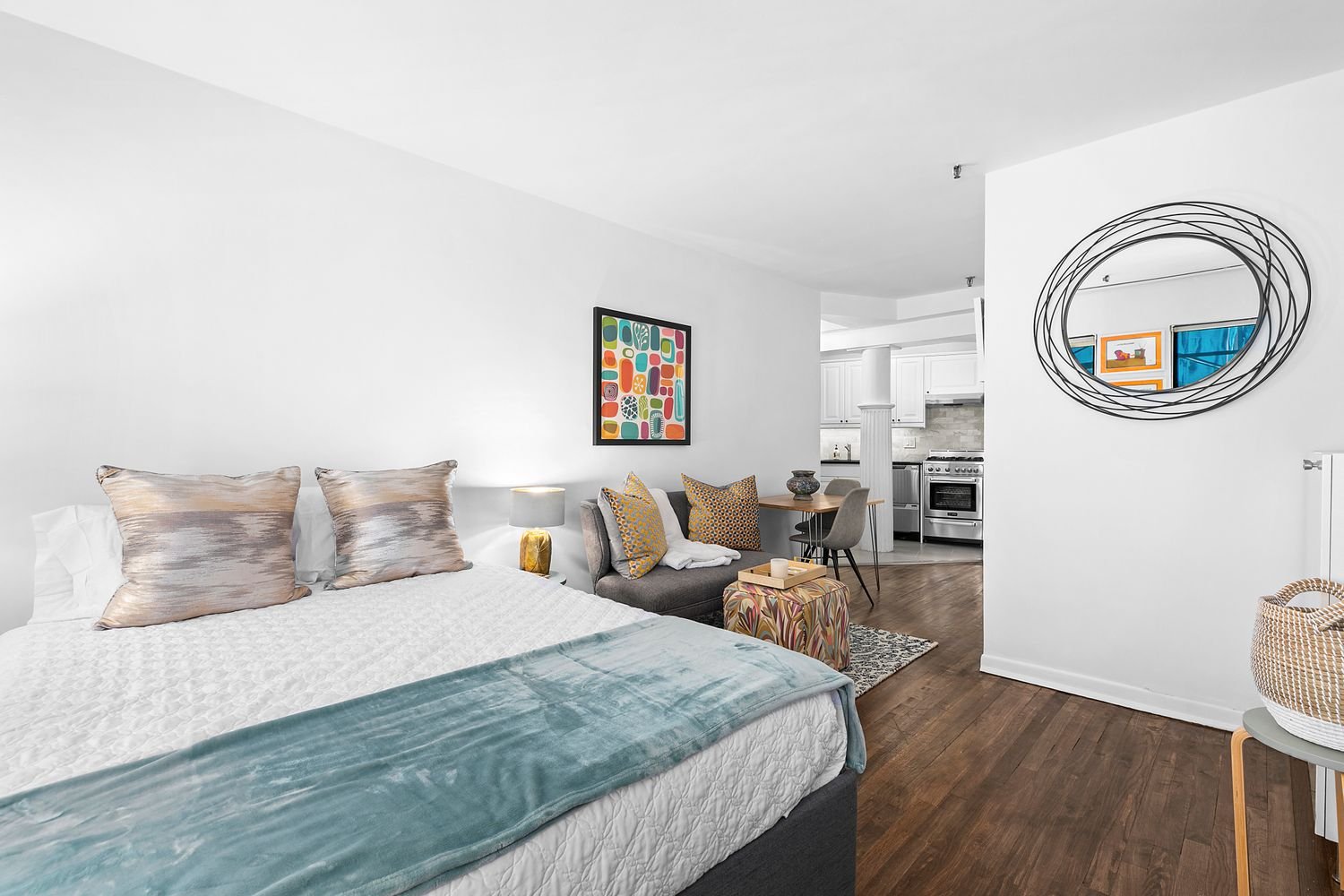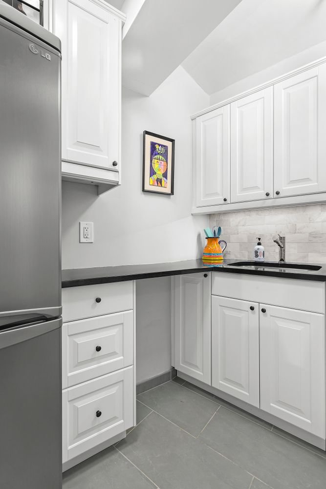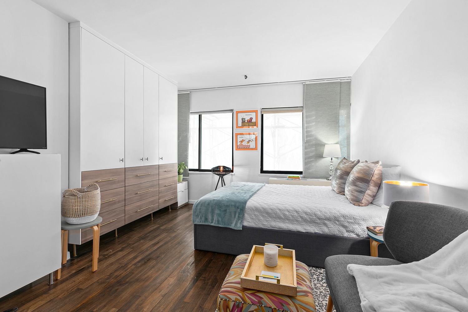 Location location! Apartment 220 is a beautifully renovated studio in the historic Cast Iron Building. This home features a newly remodeled kitchen with stainless-steel appliances including a Verona oven, Fisher and Paykel dishwasher and LG refrigerator. With black granite counters and a custom gray tile backsplash the kitchen is warm and inviting and with the open concept great for entertaining. The bathroom was just renovated with new tile and Grohe hardware as well as a refinished bath tub. Allowing for more storage space, there are custom closets and cabinetry in the living/bedroom area that offers in drawer lighting and plenty of shelves and hanging space. The unit’s South facing exposure brings in wonderful morning sunlight and with oversized windows, you get light all day long.