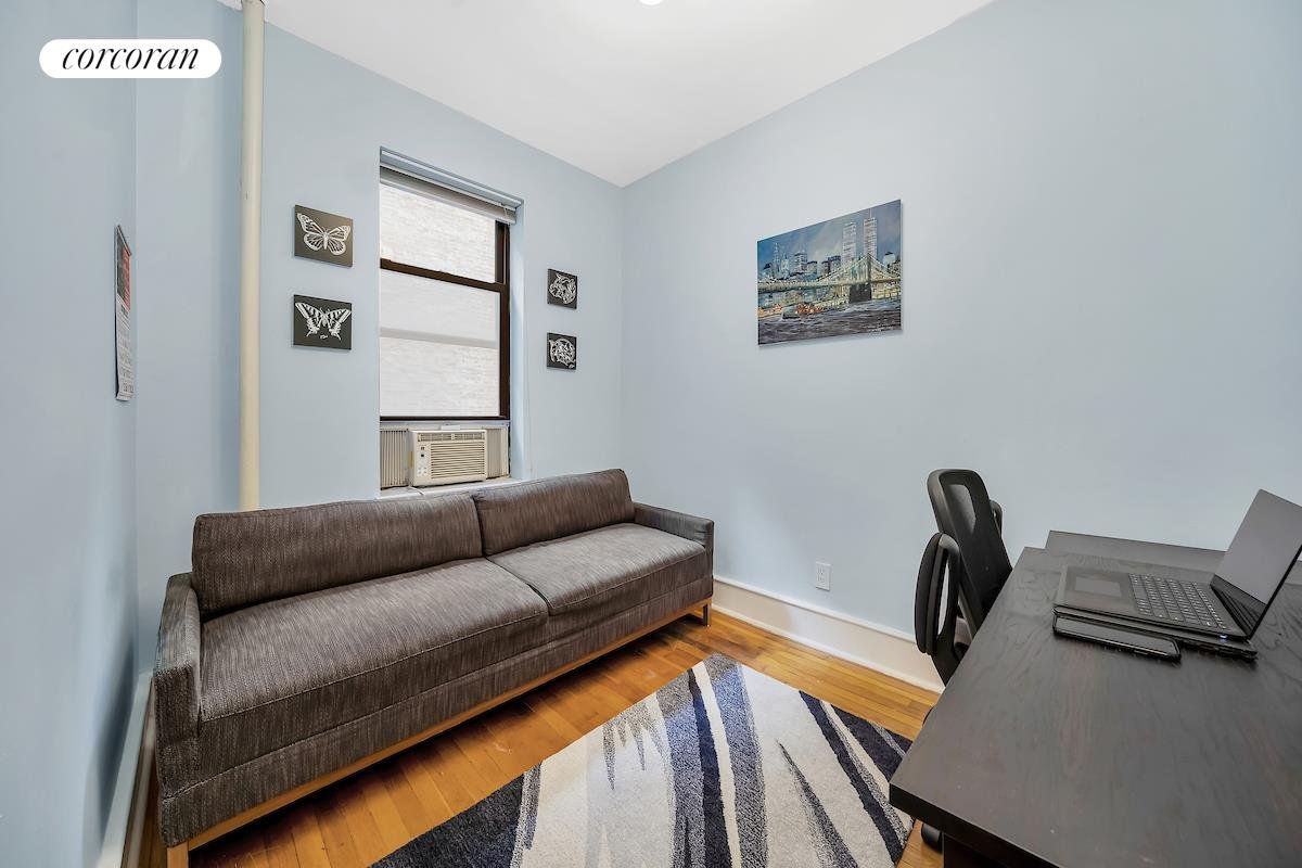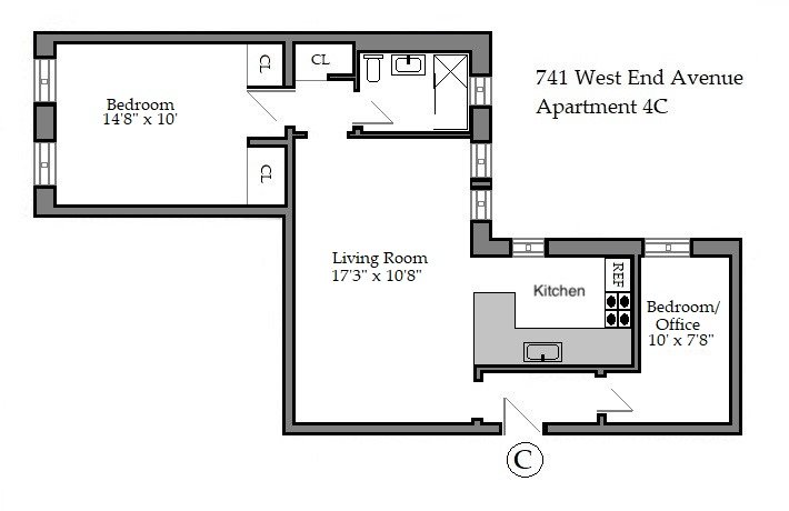 Introducing Apartment 4C at 741 West End Avenue, a charming pre-war one bedroom, one bathroom with a spacious office/second room located close to Riverside Park on the Upper West Side. Best layout in the building with a second split, office/bedroom, a windowed kitchen, windowed bath plus east, west and southern exposures. Enter from the foyer and into the spacious living room/dining area and continuing thru to the open windowed kitchen with amazing granite counterspace and practical storage; perfect for cooking. The primary bedroom has 2 closets plus ample size to fit all of your furniture. The adjacent windowed bathroom was recently fully renovated with great attention to detail. Located on the opposite side of the foyer is the second bedroom/home office/nursery. With well thought out recessed lighting scheme in the living room, the electrical was recently redone in 2020 including all fixtures and outlets. 4C also offers hardwood floors and high ceilings. A low maintenance also makes this apartment even more engaging. 741 West End Avenue is a pre war elevator building offering a live-in super, a soon to be newly renovated basement laundry room and bike room. Built in 1929 with 6 Stories and 37 residences, the co-op allows pied-a-terre, co-purchases, sublets and pets with board approval. Located one block from the 1,2 and 3 trains and the 96th Street Crosstown bus, this neighborhood boasts great restaurants and shopping with Whole Foods and Trader Joes just blocks away. 3% Flip Tax paid by Seller.