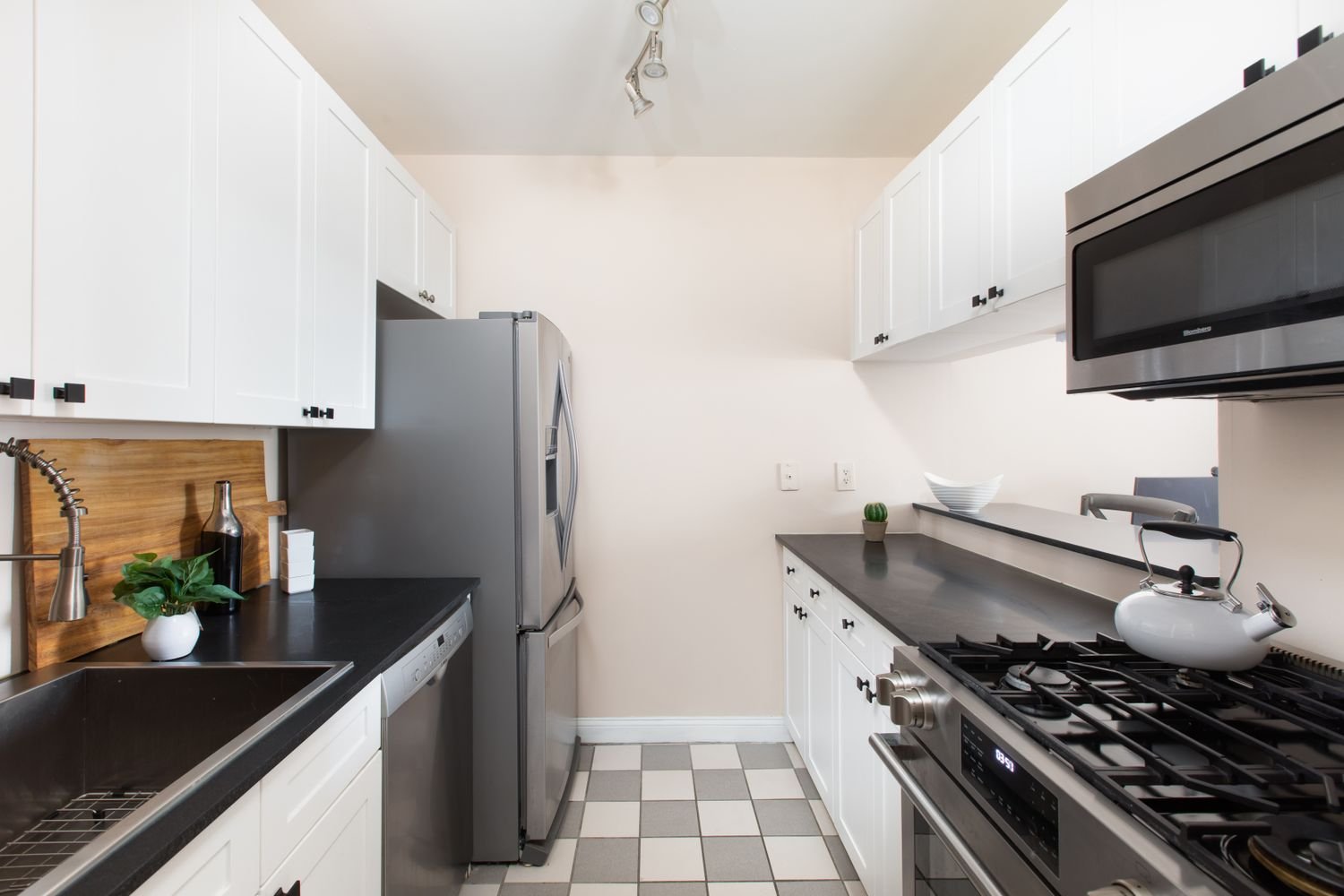 Stop Renting! This apartment is less expensive than renting a comparable apartment. Welcome to residence 412, a loft like studio with North Facing windows. This home has been upgraded with a lux like bathroom, white kitchen with black granite countertops along with top of the line Stainless Steel Appliances. This home has a large enough living area to accommodate dining, a home office, a real living room with oversized furniture and a well proportioned sleeping area. In addition, the home has outfitted California closets.