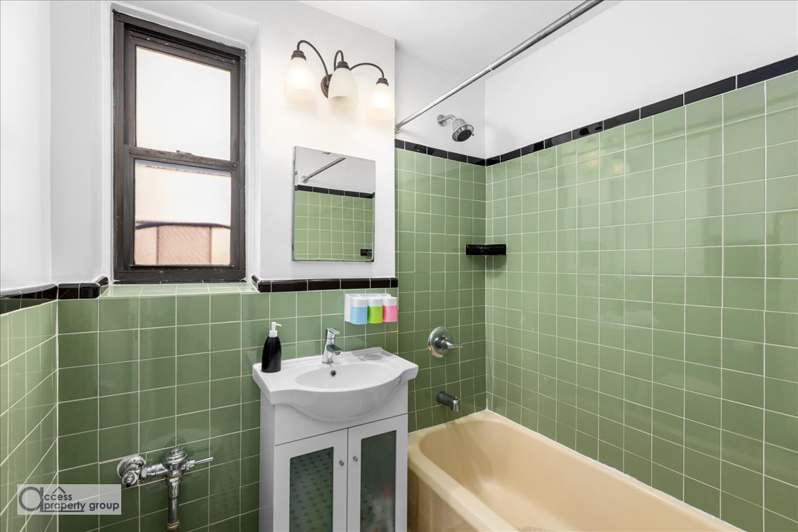 Oversized deco delight! The lovely Inwood neighborhood in Upper Manhattan is known for its stunning parks and many art deco buildings, and if this architectural style is your thing, this 1BR/1BA currently functioning as a Junior 4 will make your heart beat just a little faster due to its intricate detailing. Combined with seriously oversized dimensions and super low monthlies, this is an irresistible package that is not to be missed! Upon entrance you’ll walk into a hallway with THREE (!) closets that opens up to a central foyer featuring lovely deco arches and a built-in bookcase. The expansive eat-in-kitchen with ample wood cabinetry, basic appliances & wood floors is in perfect working condition, but also leaves room for your own custom touches down the line. The living room with lovely southern light is so huge that it has been divided into two rooms offering a perfect space for an office or such, and the massive bedroom with a double closet faces the back guaranteeing peace and quiet all day, all night. The bathroom has been fully updated with period appropriate tiling and fixtures, and features an original cast iron soaking tub for those long, relaxing baths. There are wood floors throughout the apartment, and a total of eight (!) windows with three exposures. One small dog allowed per unit. The building is nestled on one of the quietest blocks in the island of Manhattan with all amenities just a few minutes away, surrounded by green all around. Open your windows to fresh air and the sound of birds chirping instead of honking horns and car alarms, and ask yourself: “How did I get this lucky?”. NB: There is an additional fuel surcharge of $133.47/month. This fantastic nabe has great outdoor opportunities, providing easy access to tennis, basketball, and handball courts, baseball and soccer fields, hiking/biking trails, and kayaking. It boasts the best dog run of the city (according to many) and is a nature-loving city-dweller’s fantasy fulfilled. The local services include a year-round farmer’s market, cafes and restaurants, banks, florists, and hardware stores; River Plaza shopping center with Target, Marshall’s, etc. is only a short distance away. Inwood is serviced by A express and 1 local subway lines, Metro North (Marble Hill), and the east-side express bus to lower Manhattan, and is easily accessible by most major highways. To protect yourself and others, please avoid visiting our properties if you have any reason to think that you have been infected. We also encourage you to make sure to wear proper ppe at all times. We thank you for your support and understanding! Exclusive agent: access property group, inc.