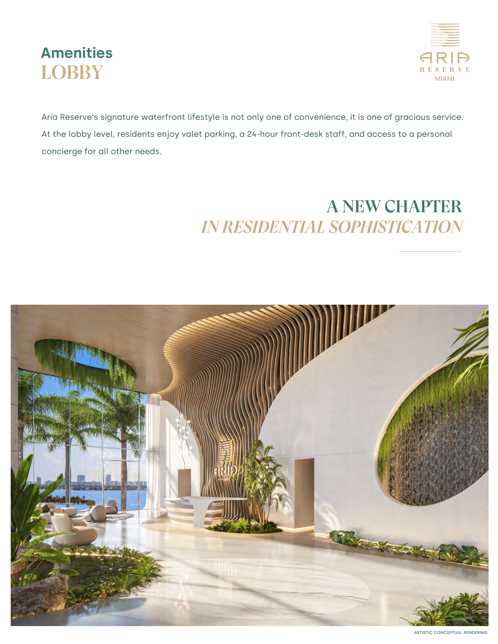 A pair of glass towers with flowing design profiles rise high above Miami’s chic Edgewater neighborhood. Directly on the shores of Biscayne Bay and surrounded by lush gardens and nature, Aria Reserve is immediately recognizable, yet feels like a private estate hidden away from the rest of the world. It is a first-of-its-kind relationship between design and nature, which creates an atmosphere of total serenity.